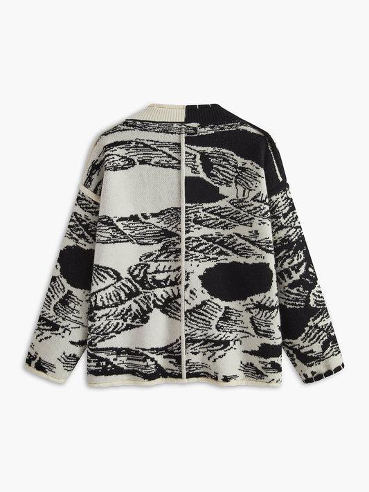 Vintage Baskılı Büyük Boy Örgü Dış Giyim