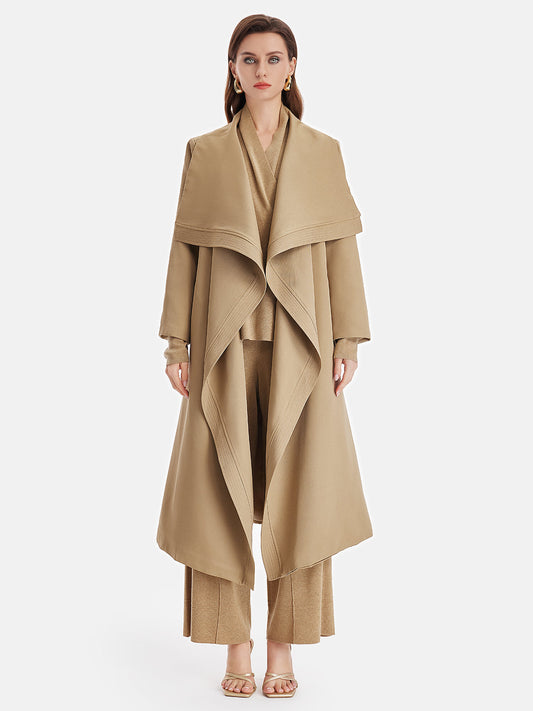 Büyük Boy Kontrast Yaka Kemerli Yün Palto
