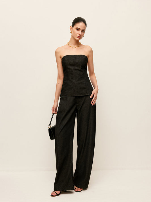 Sırt Fermuarlı Straplez Kot Üst