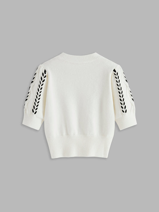 Kontrast Trim Boncuklu Örgü Üst