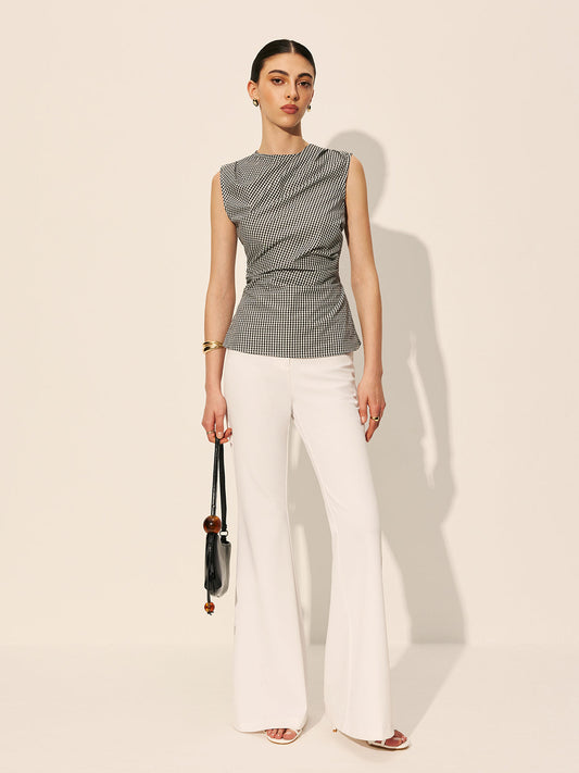 Kare Yaka İnce Çizgili Kolsuz Üst