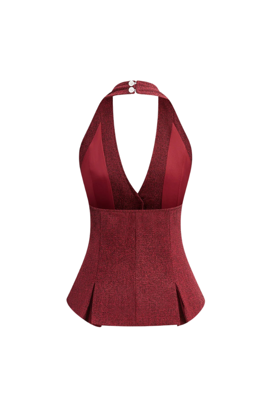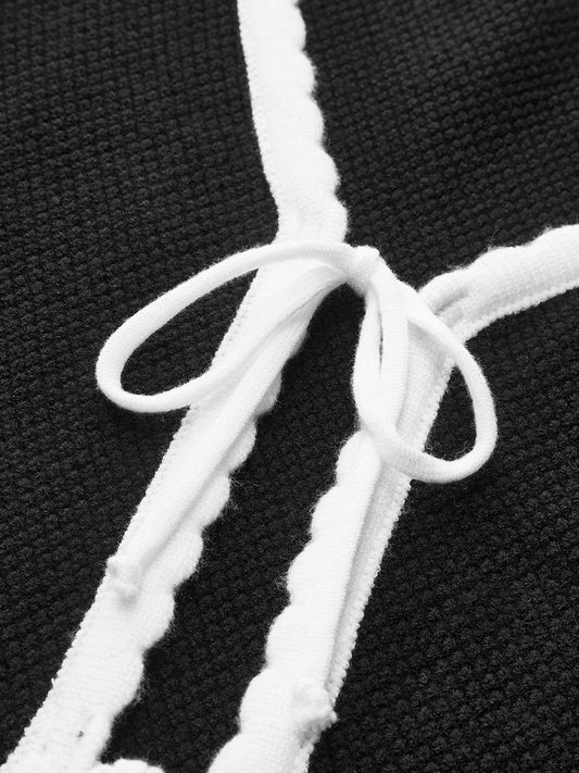 Kontrast Yaka Düğmeli Yelek Sırt Fiyonklu