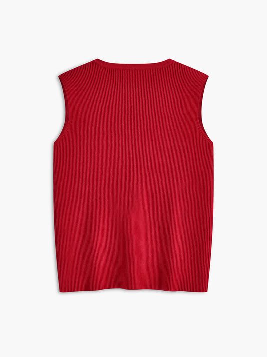 Keten Ve Pamuklu Kolsuz Düğmeli Yelek