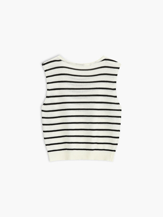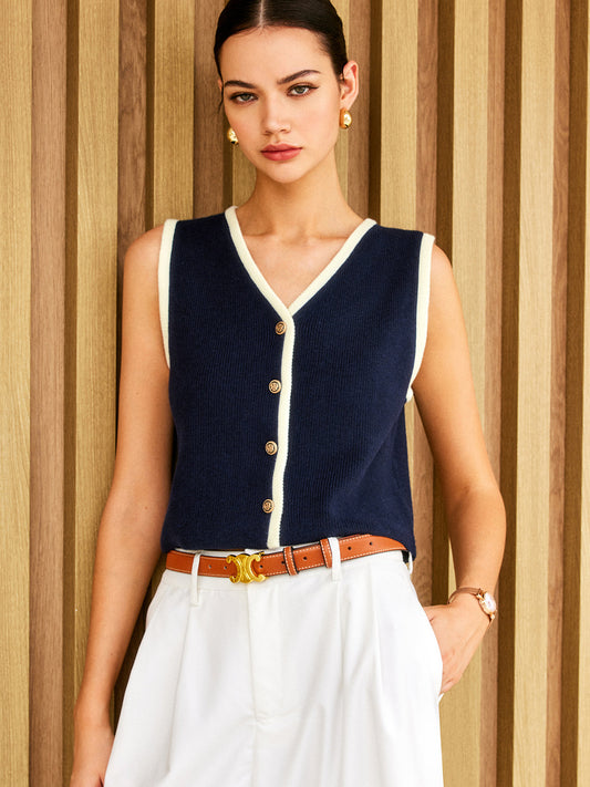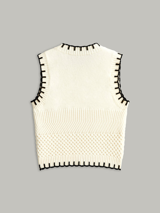 Kontrast Trim Yaka Düğmeli Örgü Yelek