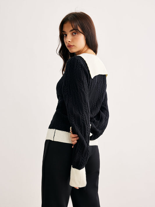 33% İndirimKontrast Bağlamalı Omuz Açık Kazak