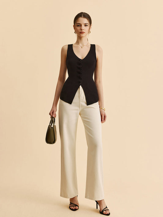 30% İndirimMetal Detay V Yaka Bölünmüş Kazak Yelek