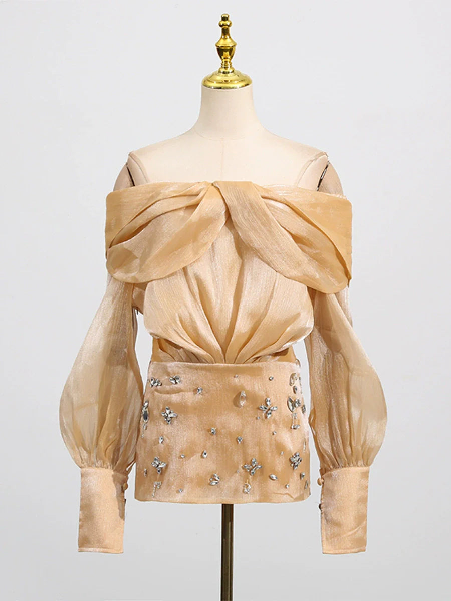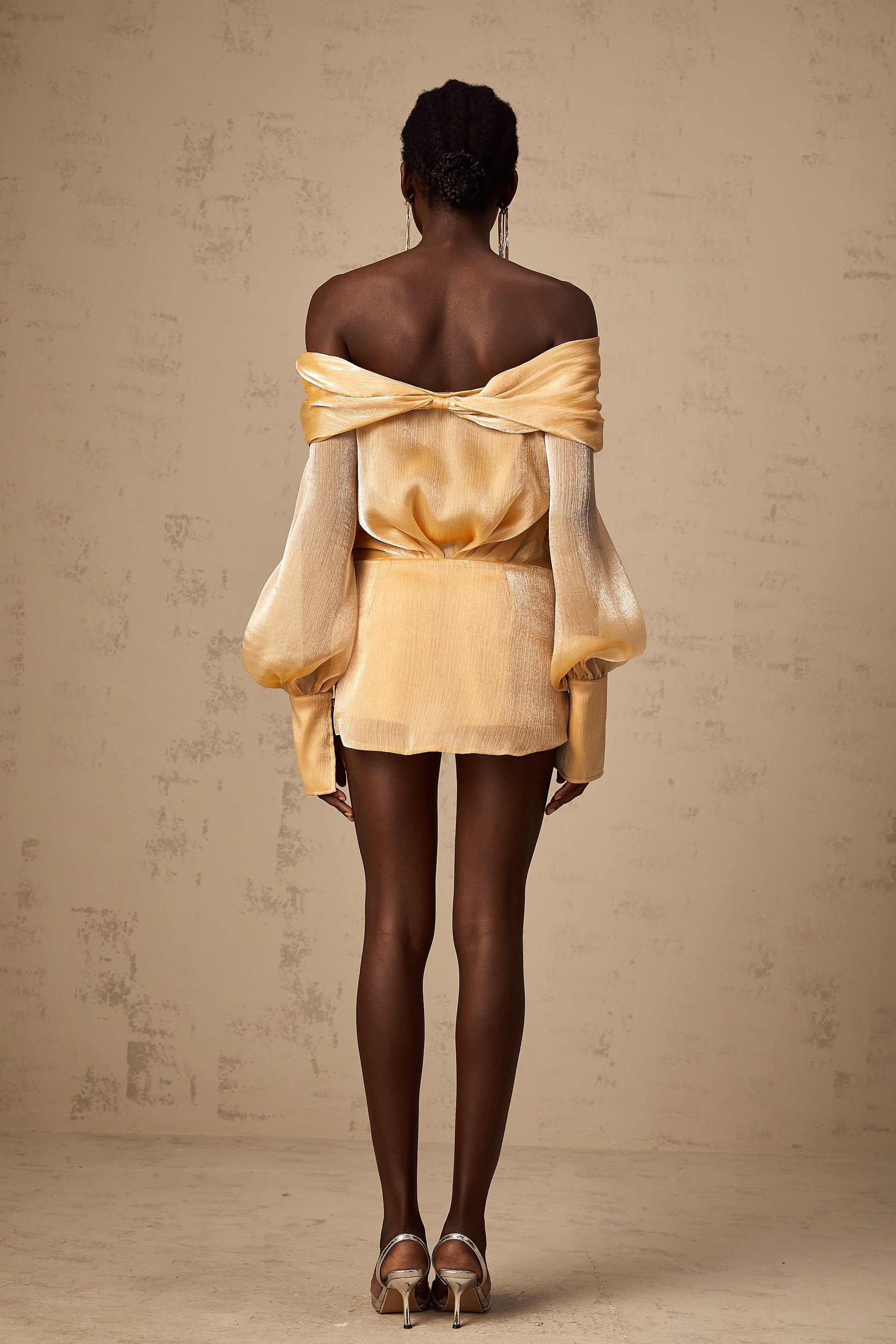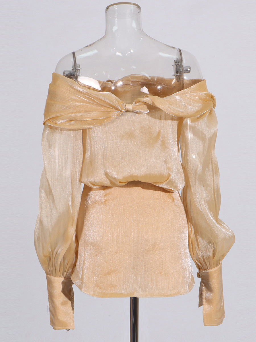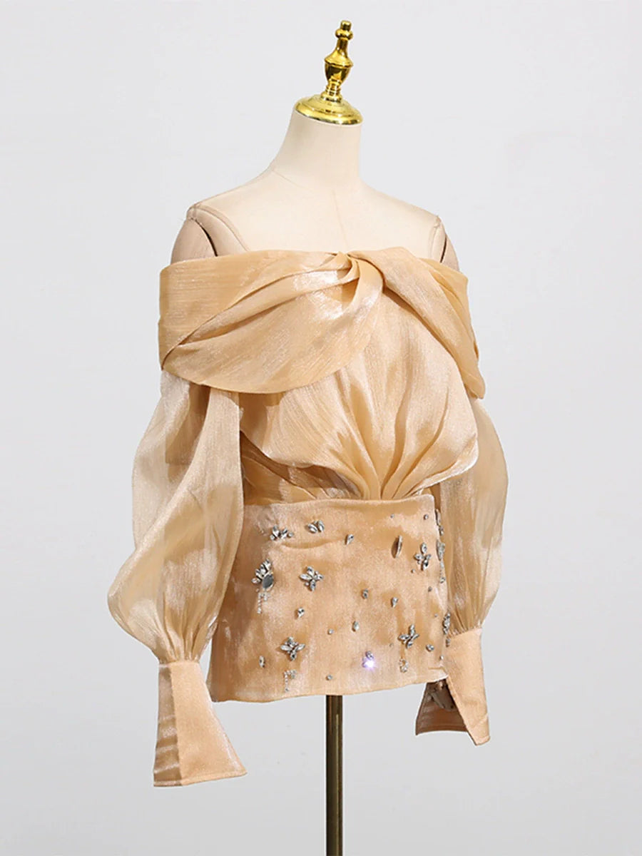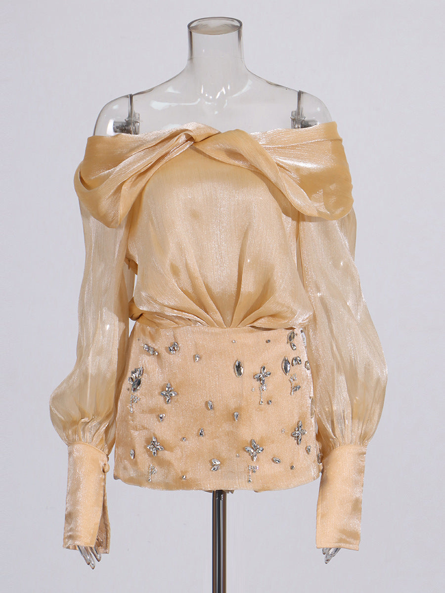 Adelina Altın Kristal Süslemeli Panelli Mini Elbise