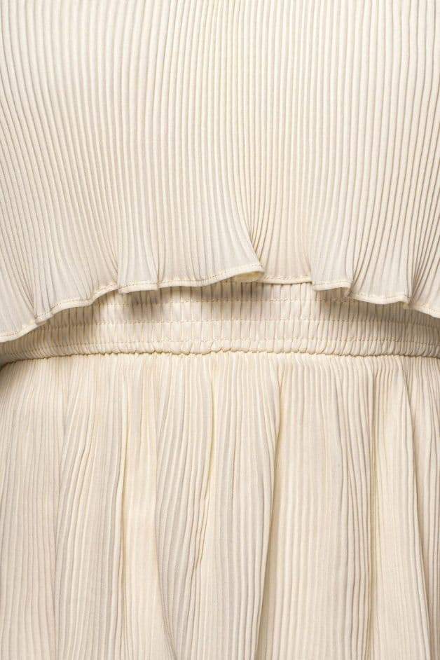 Yvonne Diamante Tüylü Pileli Maxi Şifon Elbise
