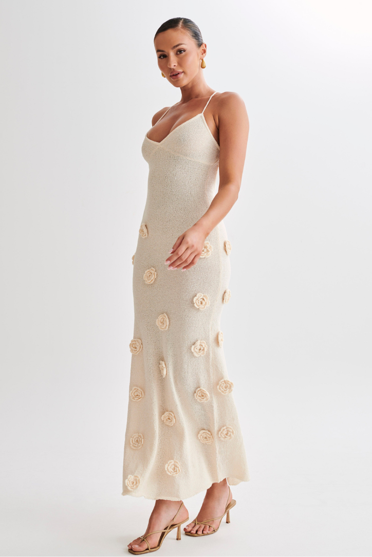 Nina Çiçek İşlemeli Payetler Maxi Elbise