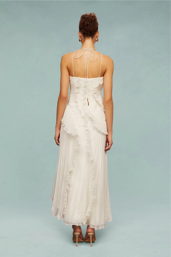 Anabella Pileli Fırfırlı Beyaz Midi Elbise, modern ve sofistike bir silüet sunar…