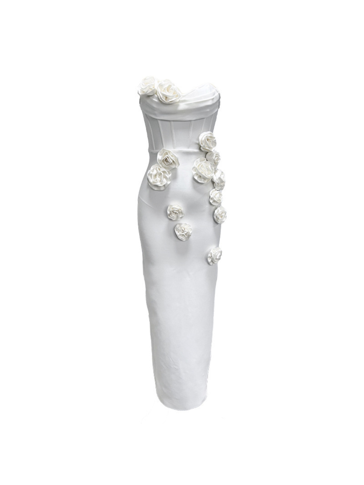 Arushi Beyaz Straplez Gül Bandaj Elbise