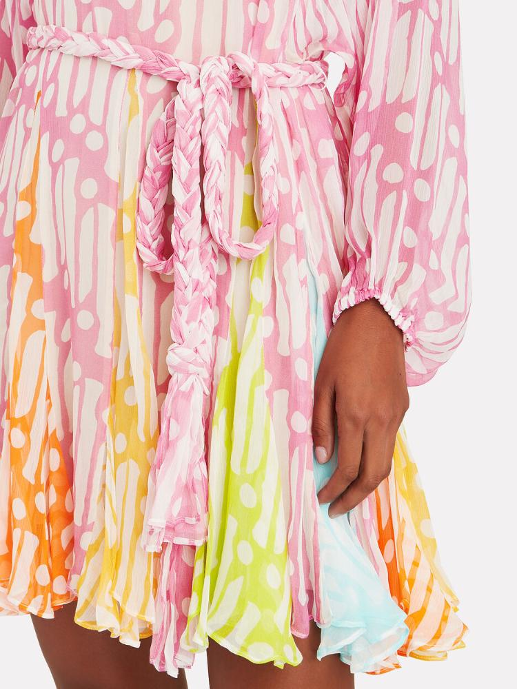 Astrid Baskılı Yuvarlak Yaka Kuşaklı Tunik Mini Elbise
