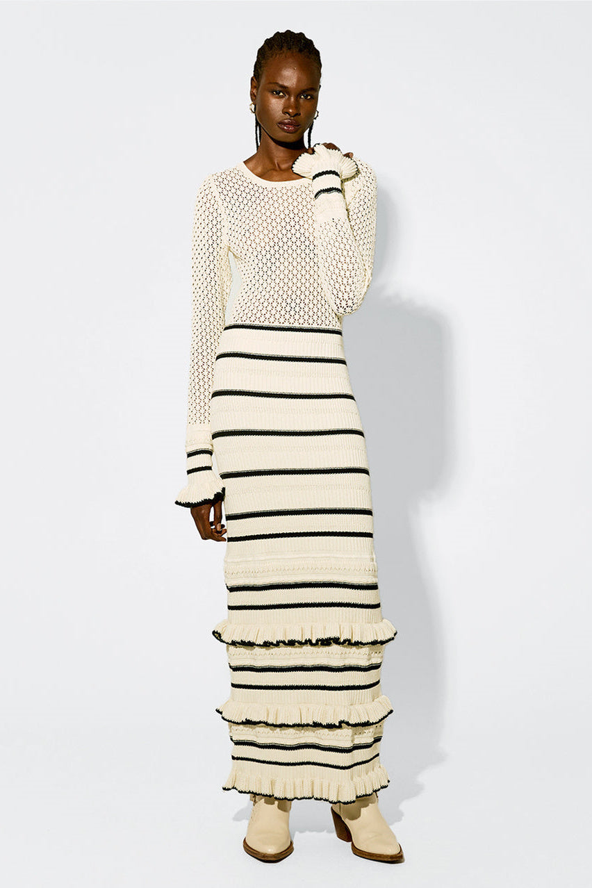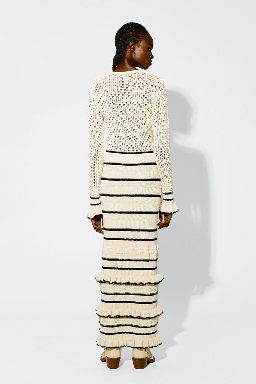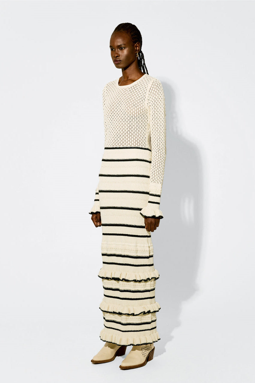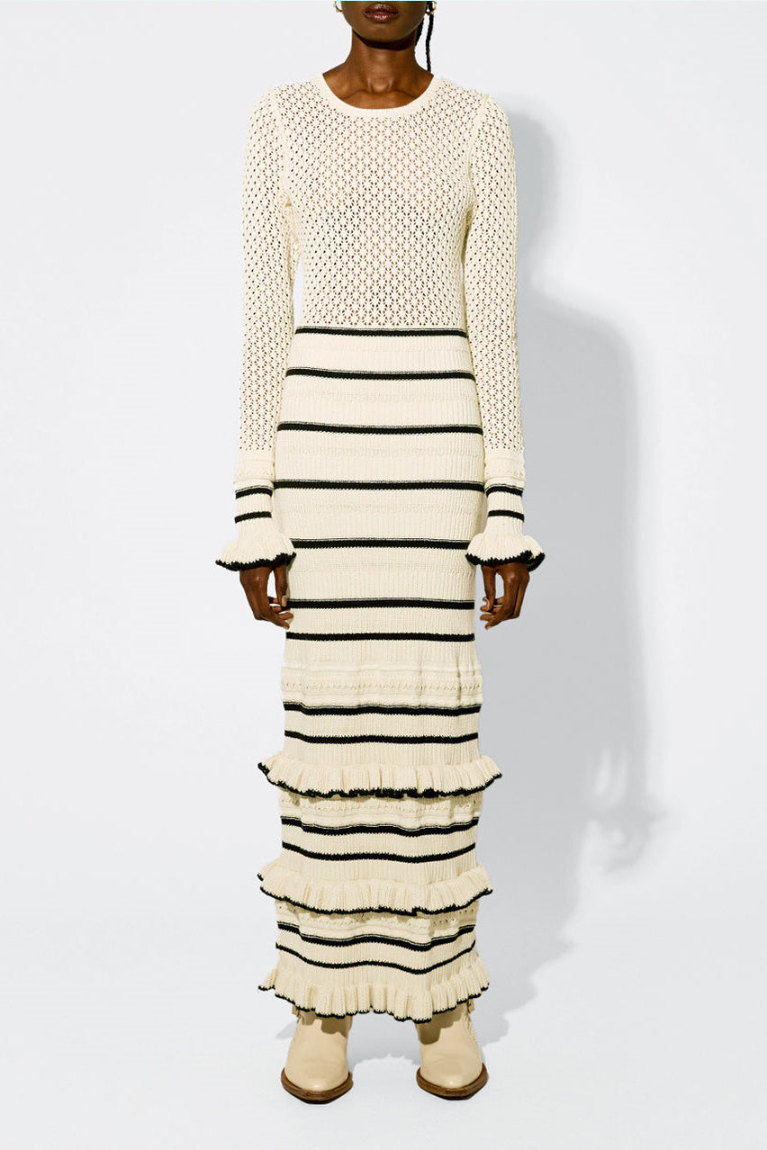 Audrey Şeritli Nervürlü Örgü Maxi Elbise