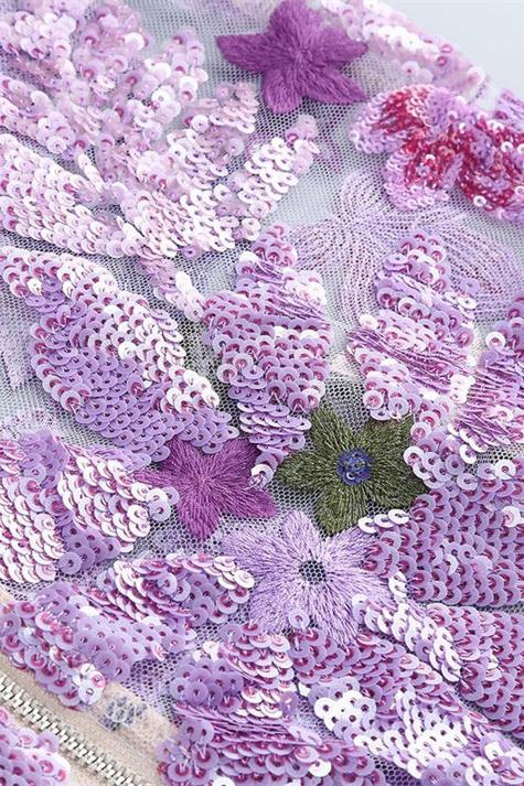 Nina Çiçek İşlemeli Payetler Maxi Elbise