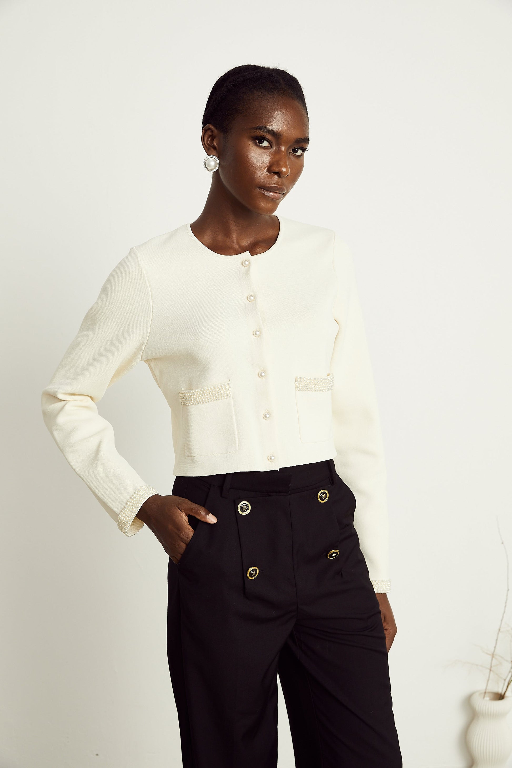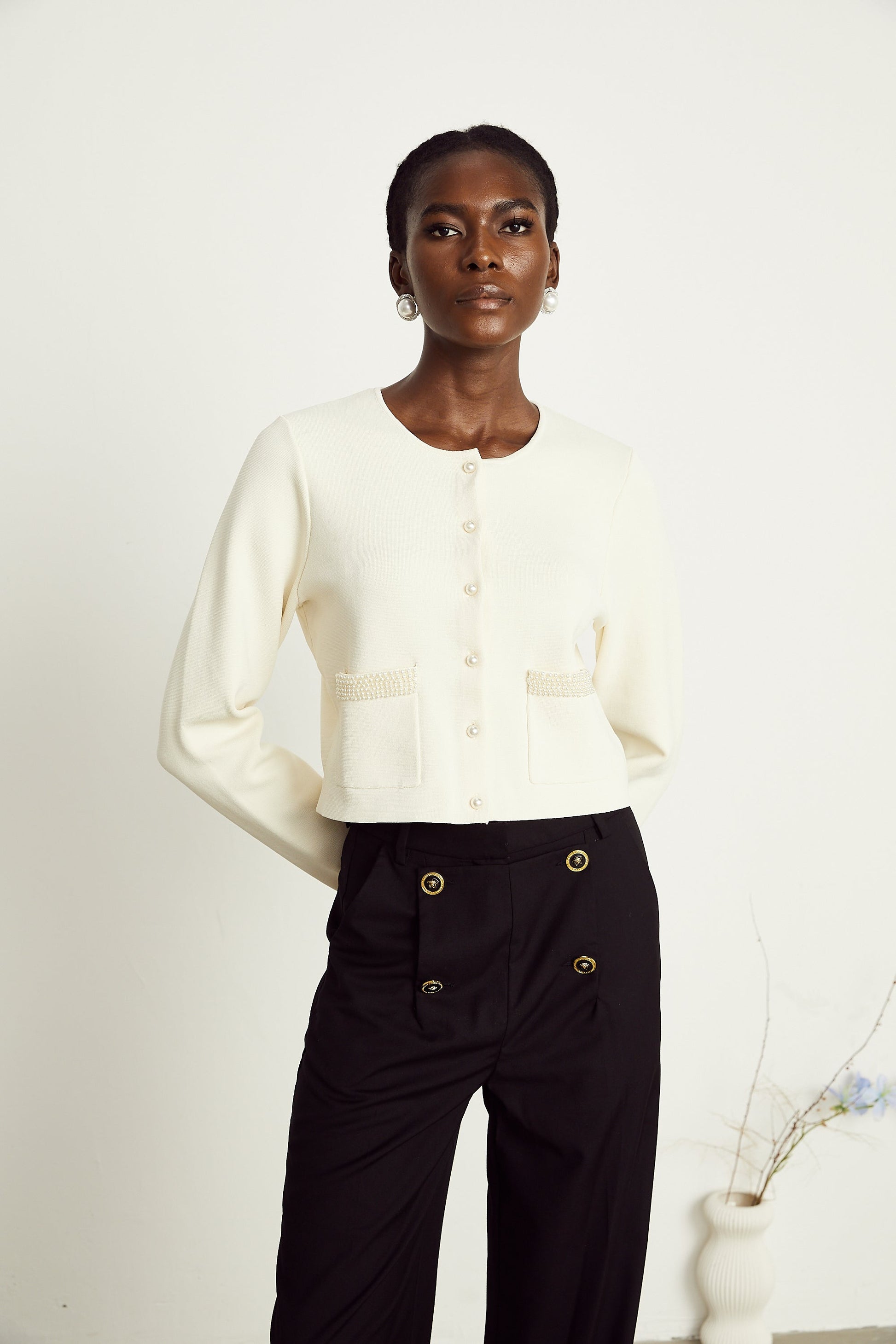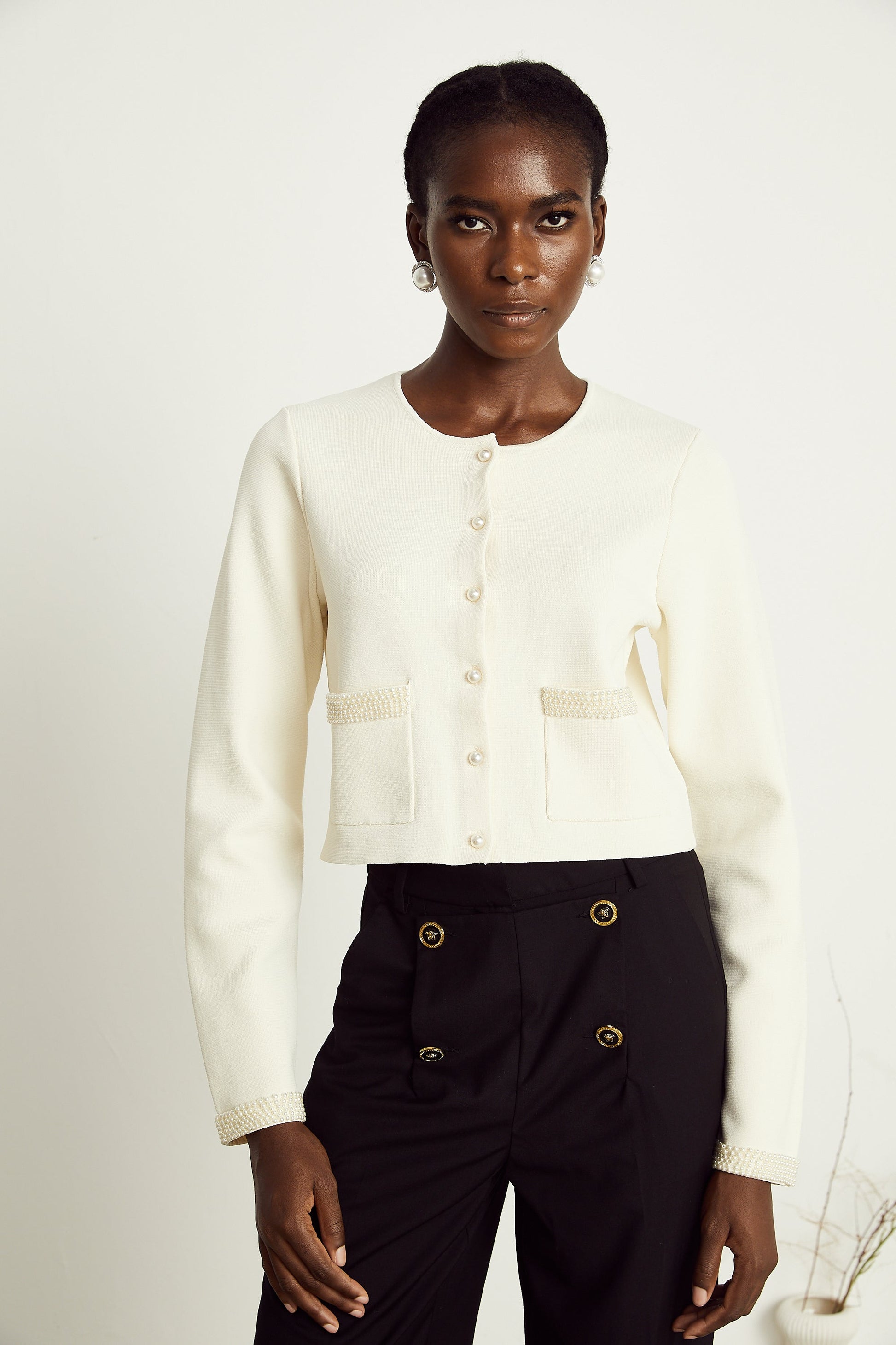 Aurora Bej Suni İnci Hırka