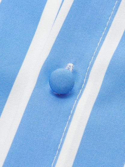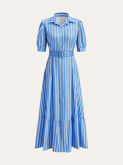 Kabarık Kollu Kemerli Çizgili Elbise