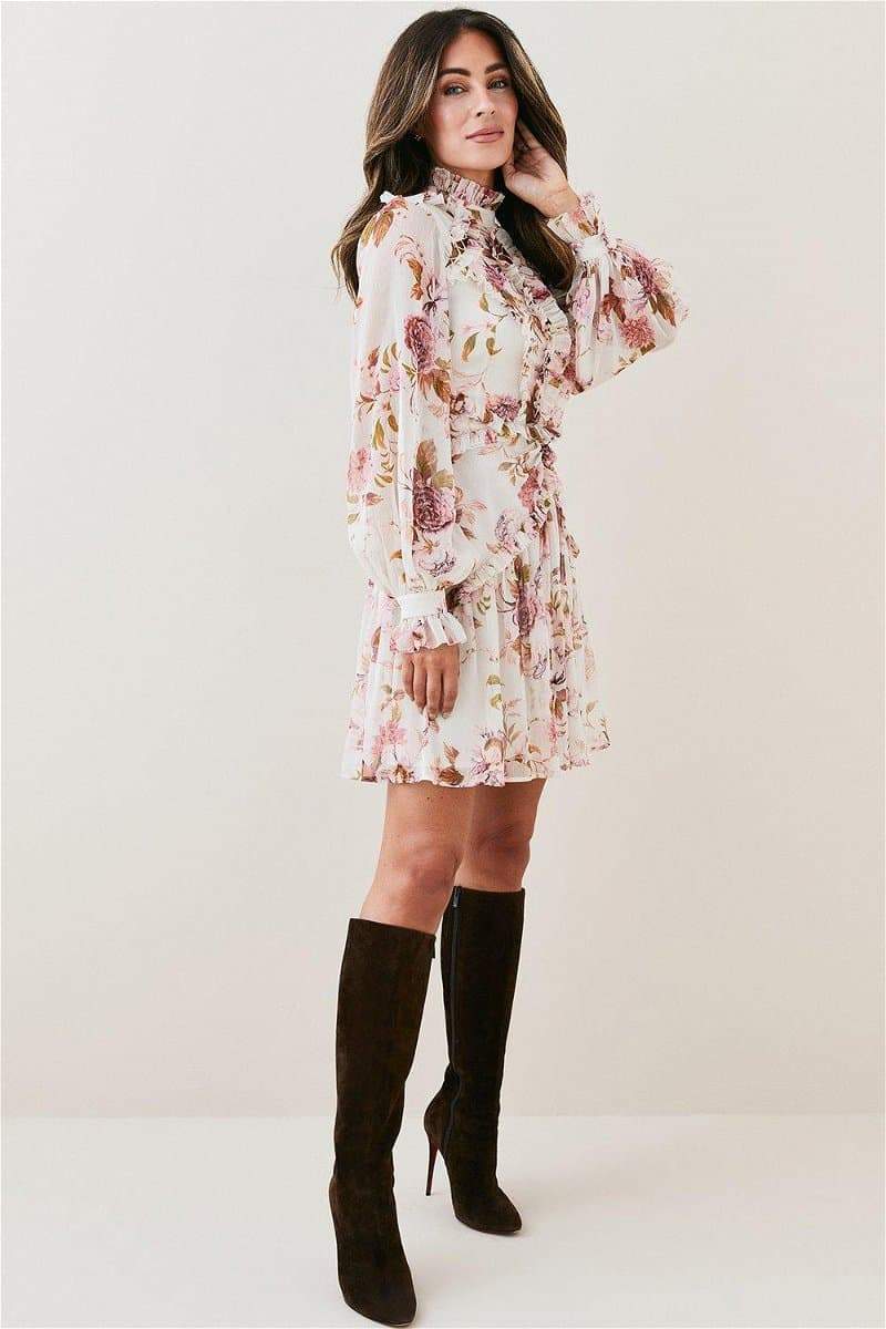 Betsy Baskılı Fırfırlı İçi Boş Mini Elbise