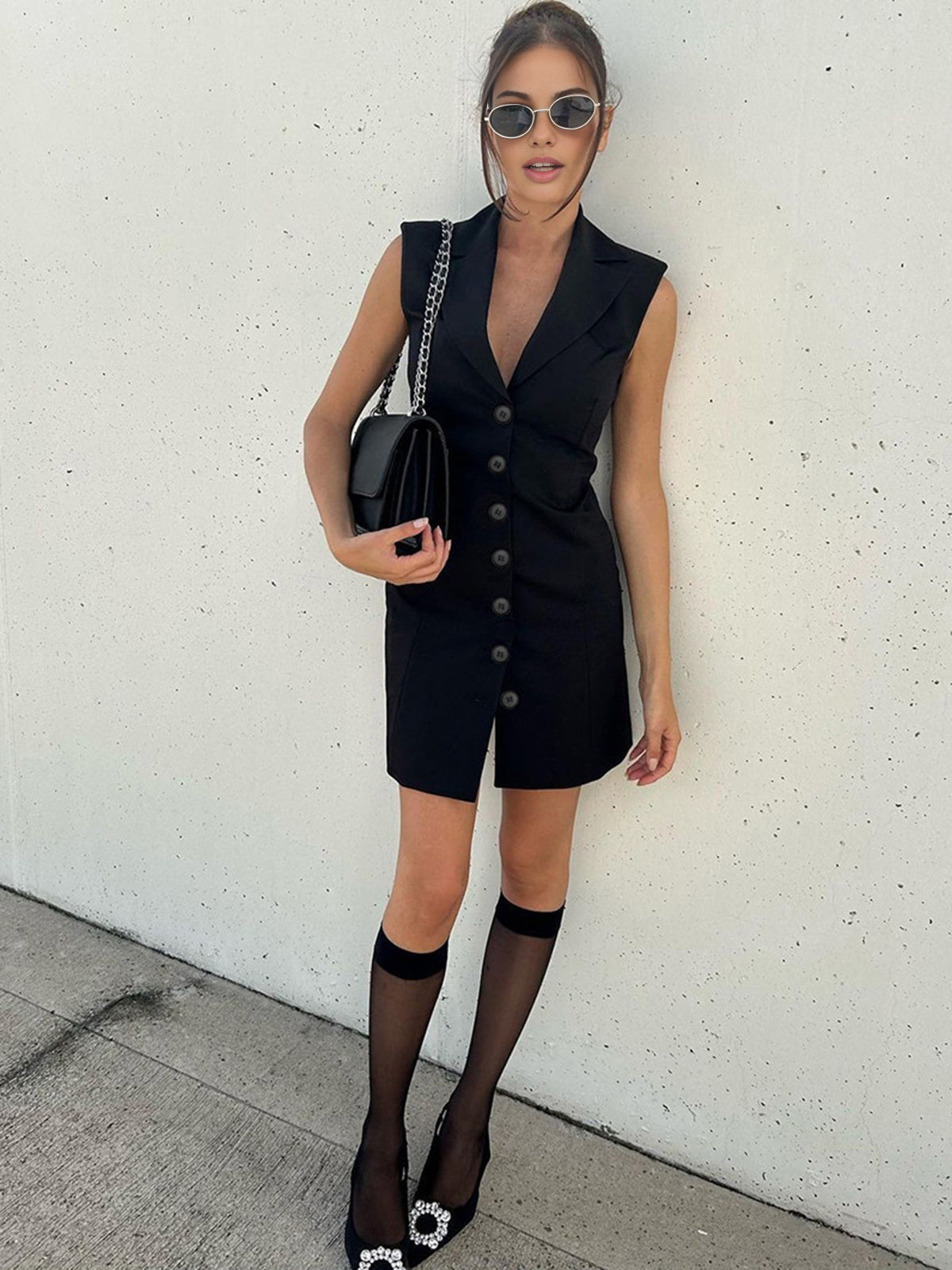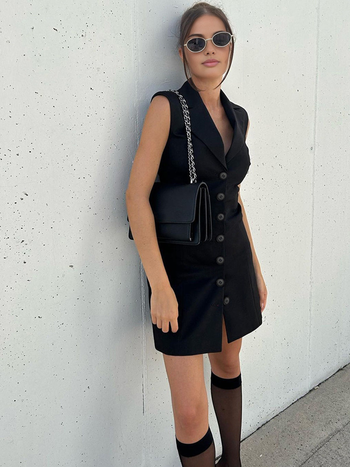 Kennedi Siyah Kolsuz Hollow Maxi Elbise