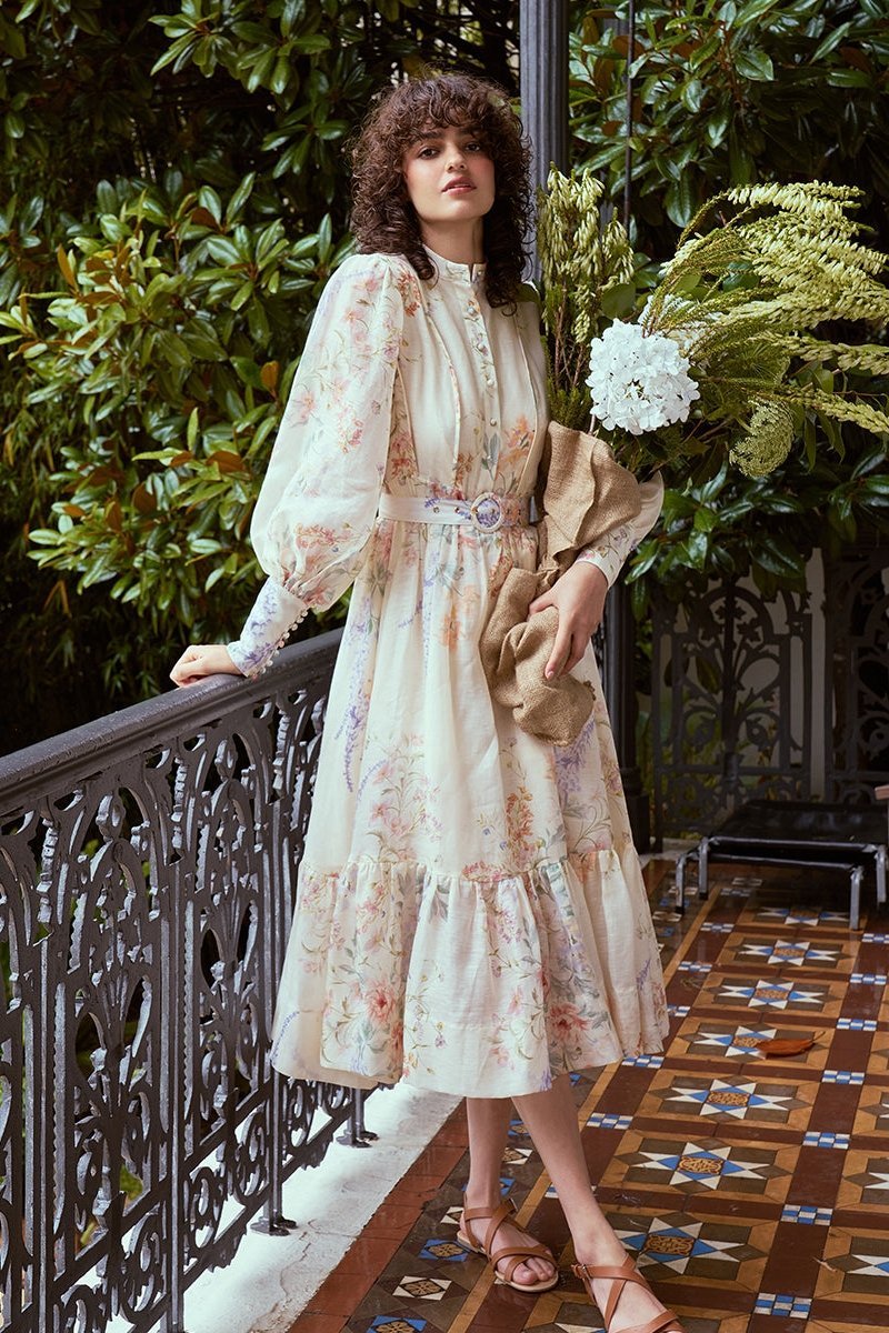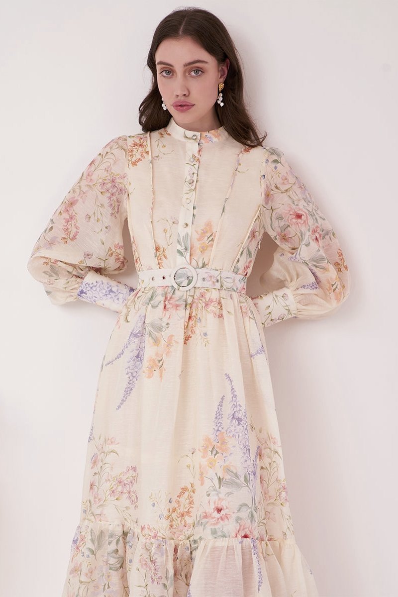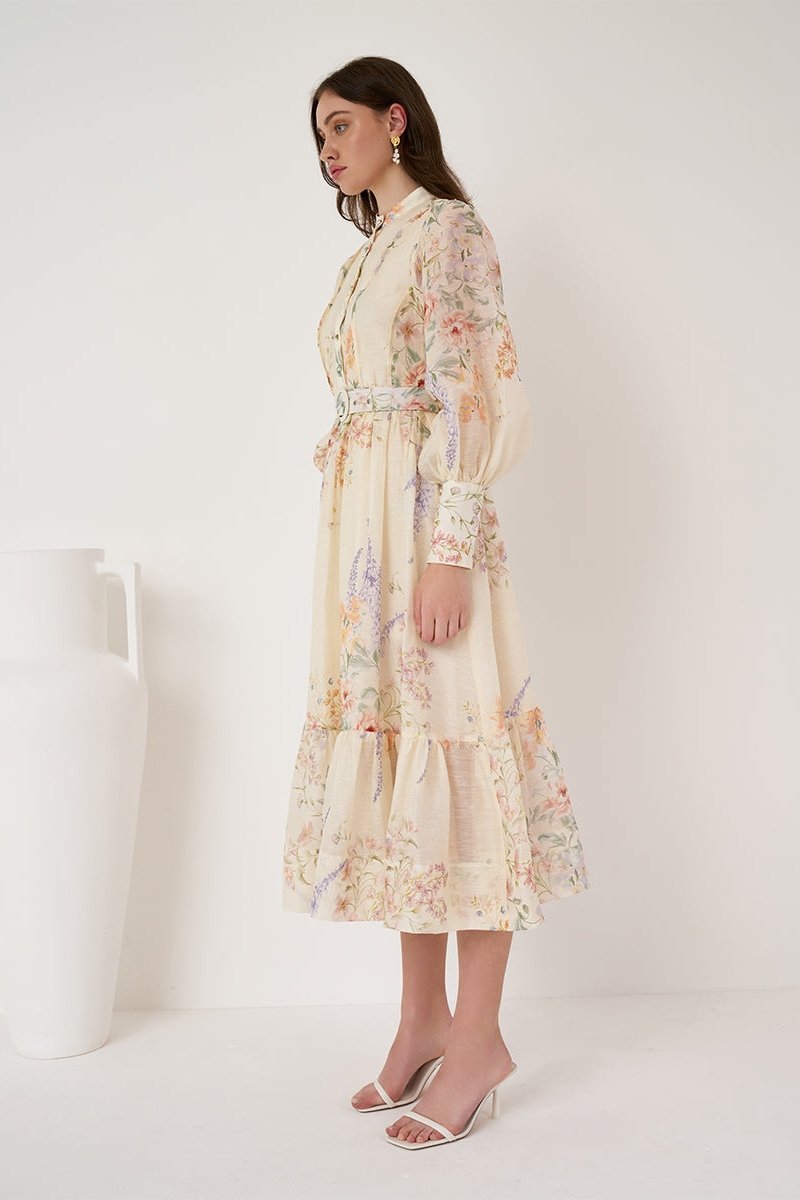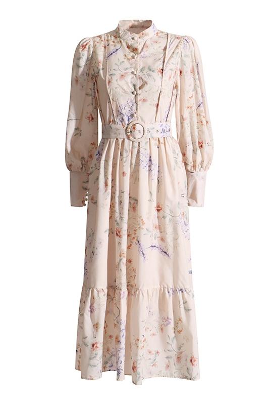 Caitlin Baskılı Kuşaklı Midi Elbise