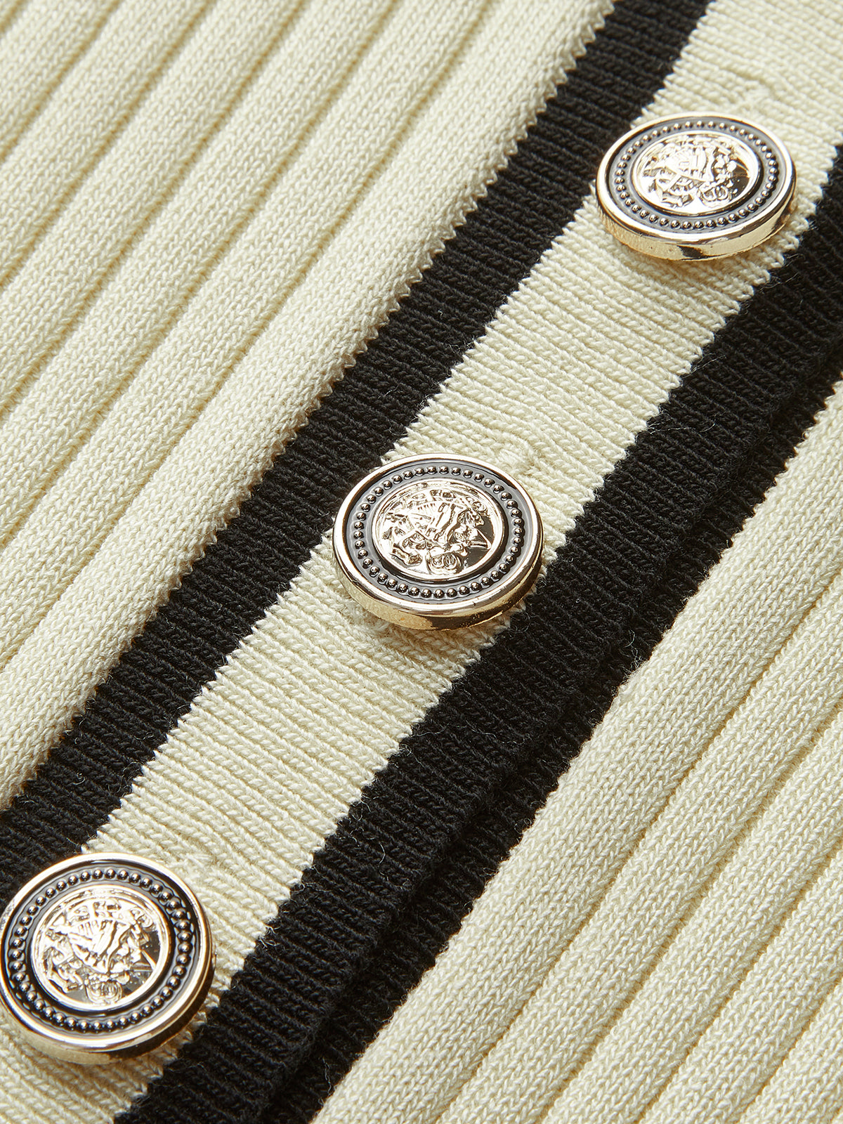 Kontrast Trim Yakalı Kaburga Örgü Kısa Kollu Midi Elbise