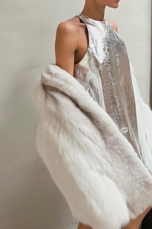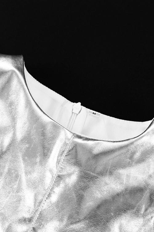 Mercan Metalik Mini Shift Elbise