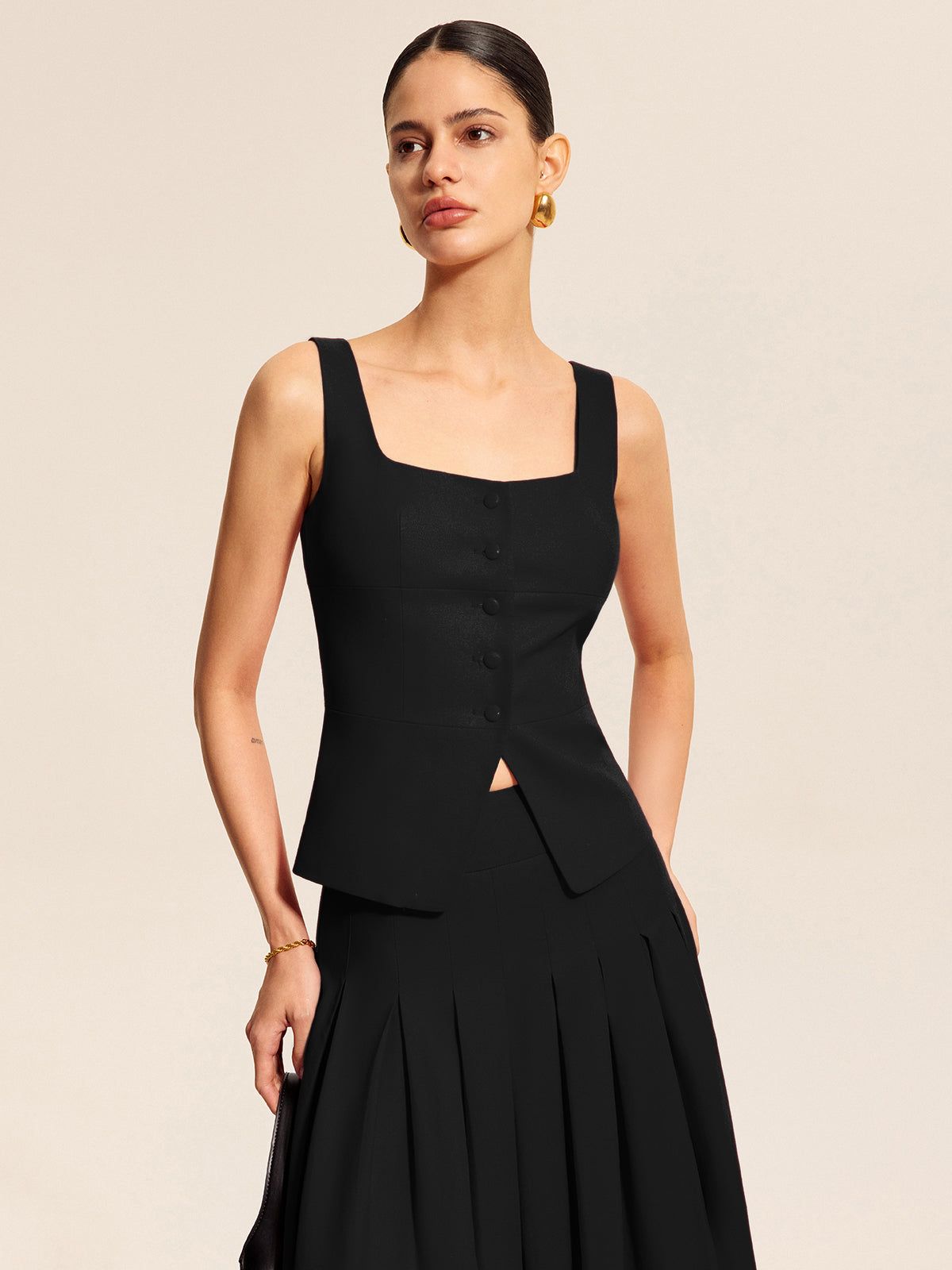 Pamuk & Keten Kare Yaka Yelek Üst