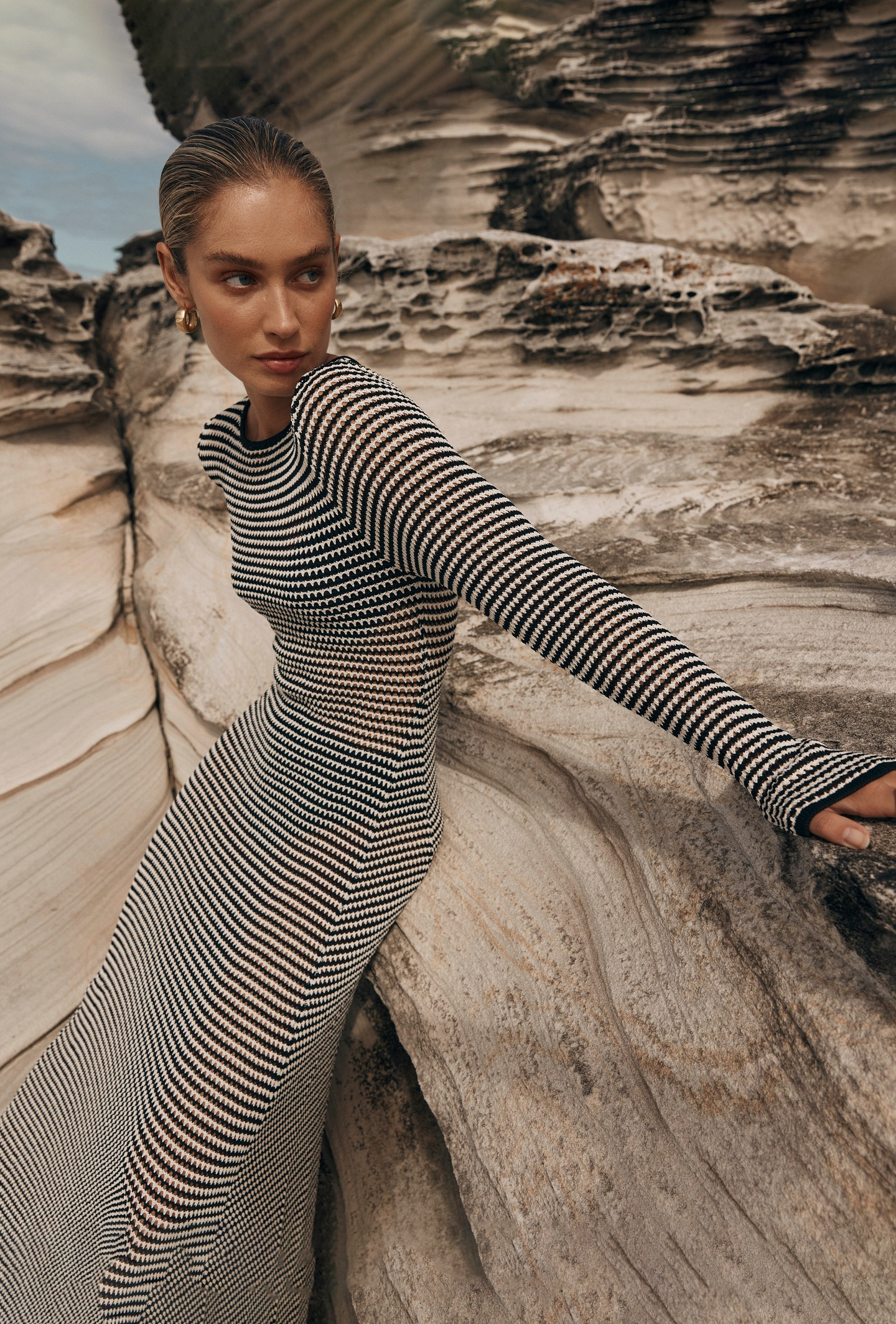 Eloise Uzun Kollu Fiyonklu Maxi Elbise