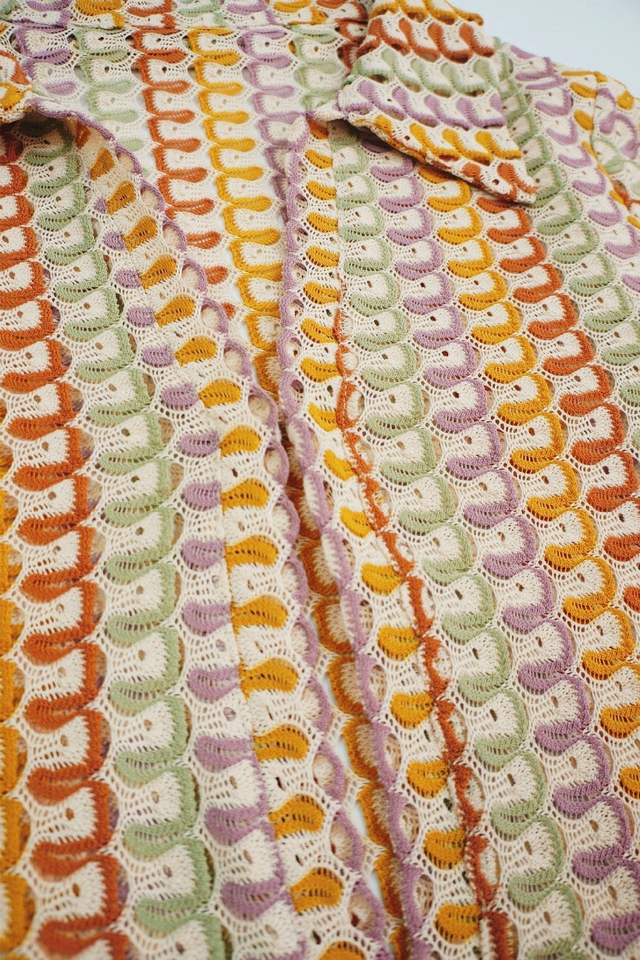 Şafak V Yaka Yakalı Tığ İşi Maxi Elbise