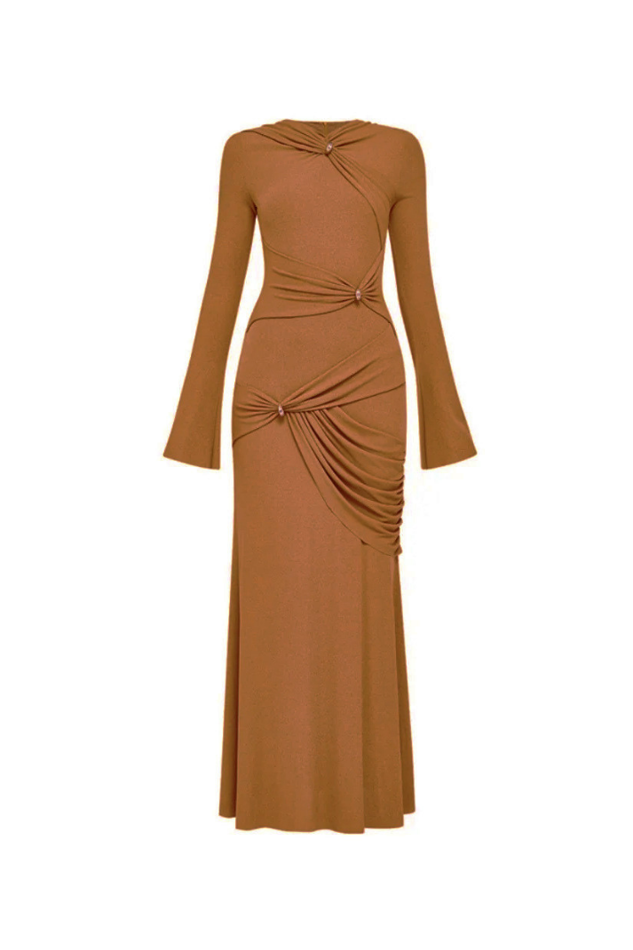Elbiselerimiz, çağdaş tasarım unsurlarıyla klasik güzellik kavramını yeniden tanımlıyor. Zarif, vücuda oturan siluet, zarif bir görünüm yaratarak sizi gecenin parlayan yıldızı yapar. İster bir galaya, ister bir düğüne veya resmi bir akşam yemeğine katılın, bu elbise zahmetsizce göz alıcı bir görünüm için tercihiniz olacak.