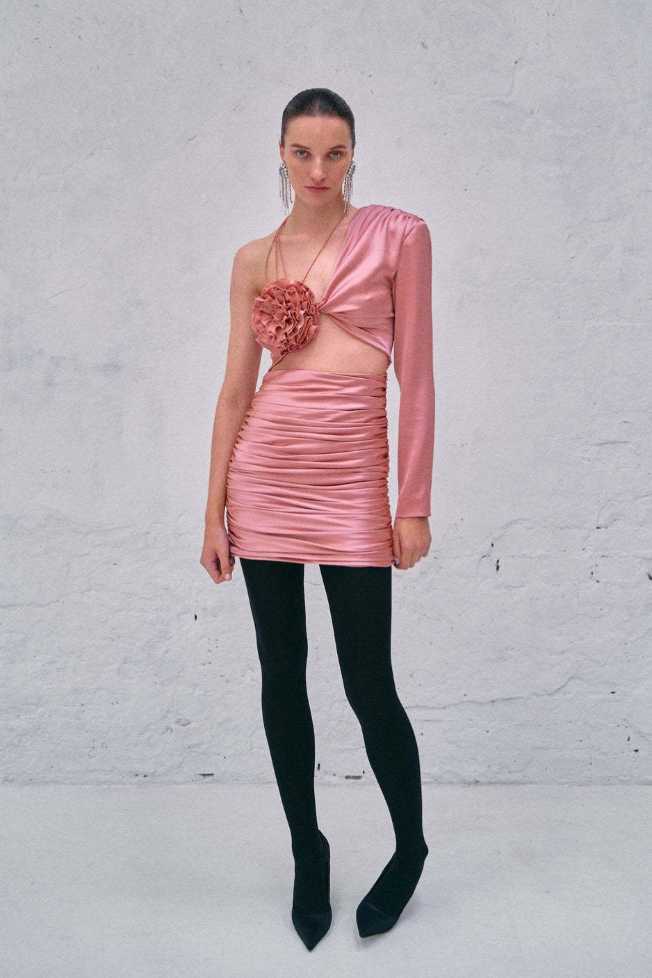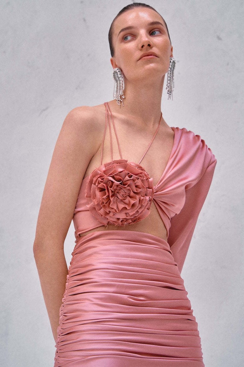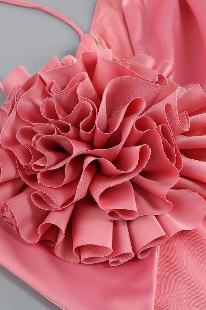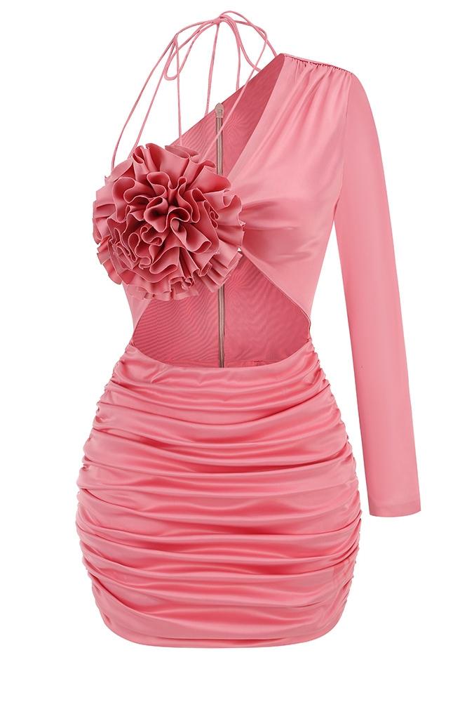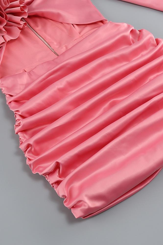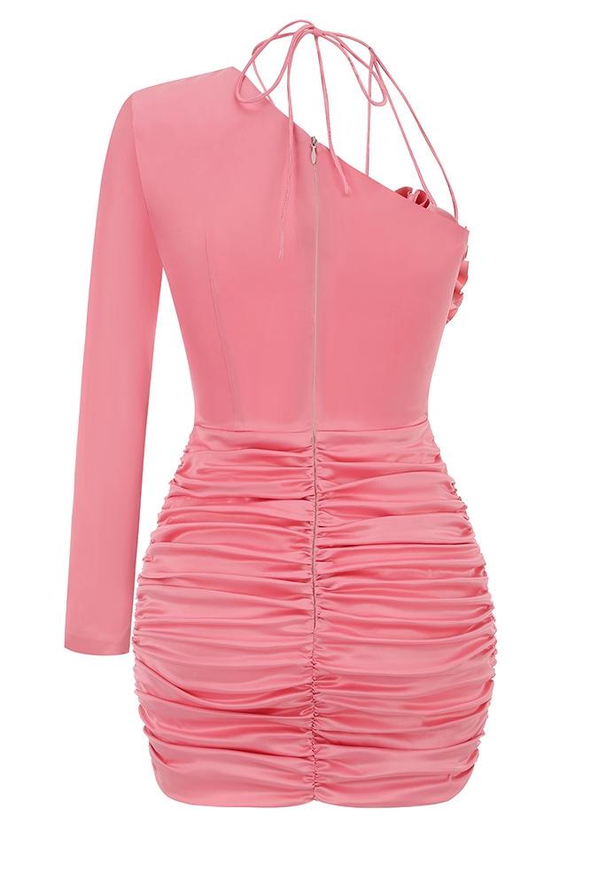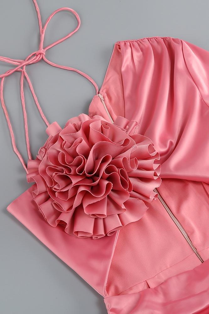 Dolores Çiçek Bağcıklı Büzgülü Mini Elbise