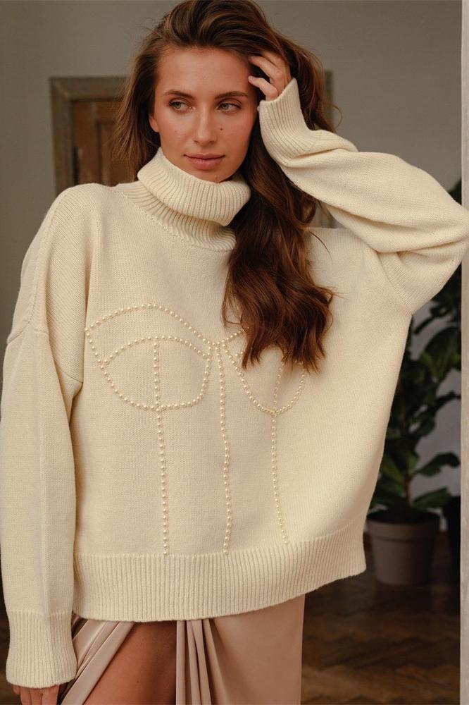Eartha İncili Balıkçı Yaka Kazak Kazak