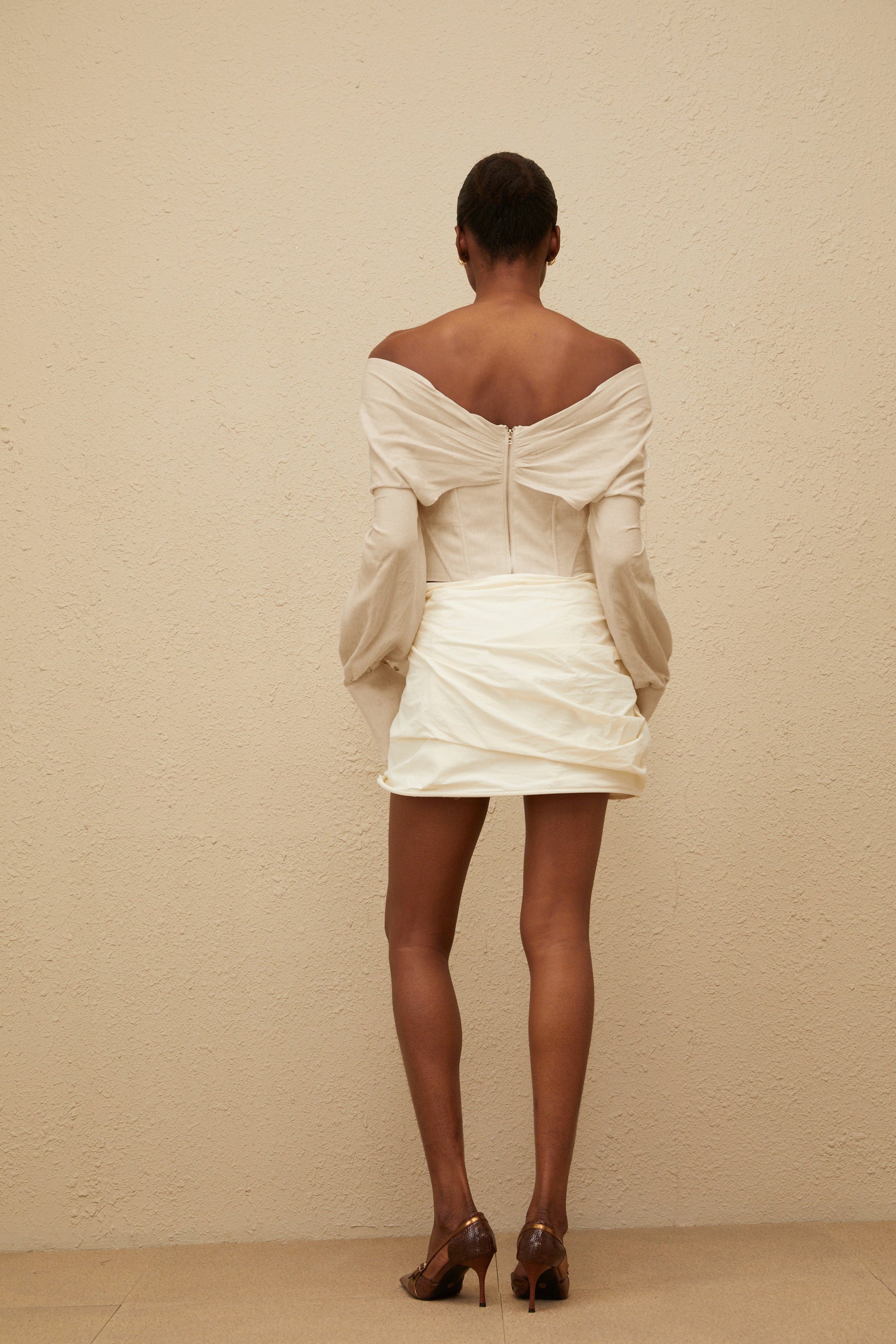 Özellikler: Baleni detaylı korse, dantel bağlama ve büzgülü detaylarla sofistike bir dokunuş. Kısa kesim tasarım.