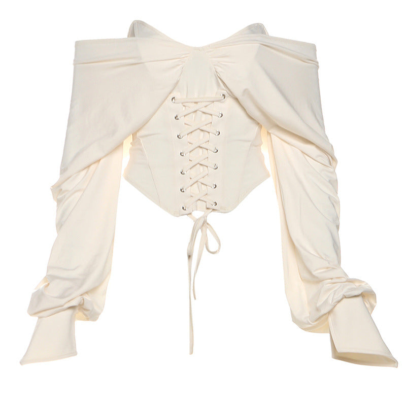 Éclatante Omuz Açık Dantel Bağlamalı Kısa Bluz