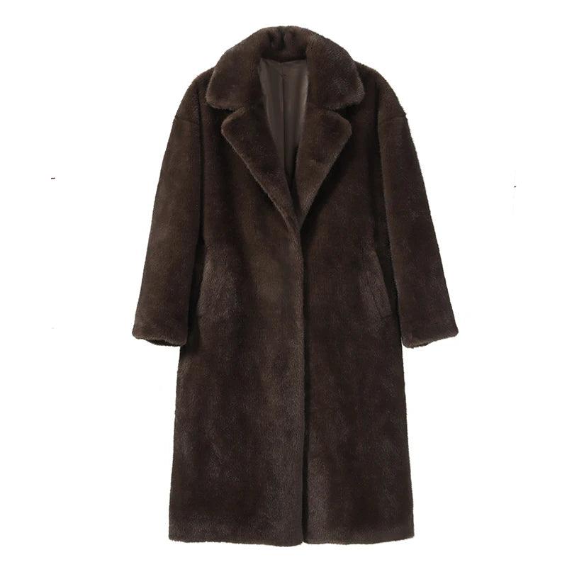 Bu zarif uzun suni kürk manto ile kendinizi sıcaklık ve sofistike bir şekilde sarın. Lüks dokusu ve klasik tasarımıyla soğuk aylarda rahat etmek için mükemmeldir. Özel kesimi ve tam boy stili, resmi etkinlikler veya günlük kış giyimi için ideal bir seçimdir ve her kıyafete zamansız bir cazibe katar.
