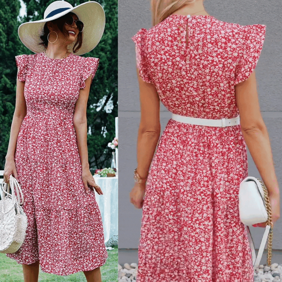 21% İndirimGloria Paisley Baskılı Fırfırlı Uzun Elbise
