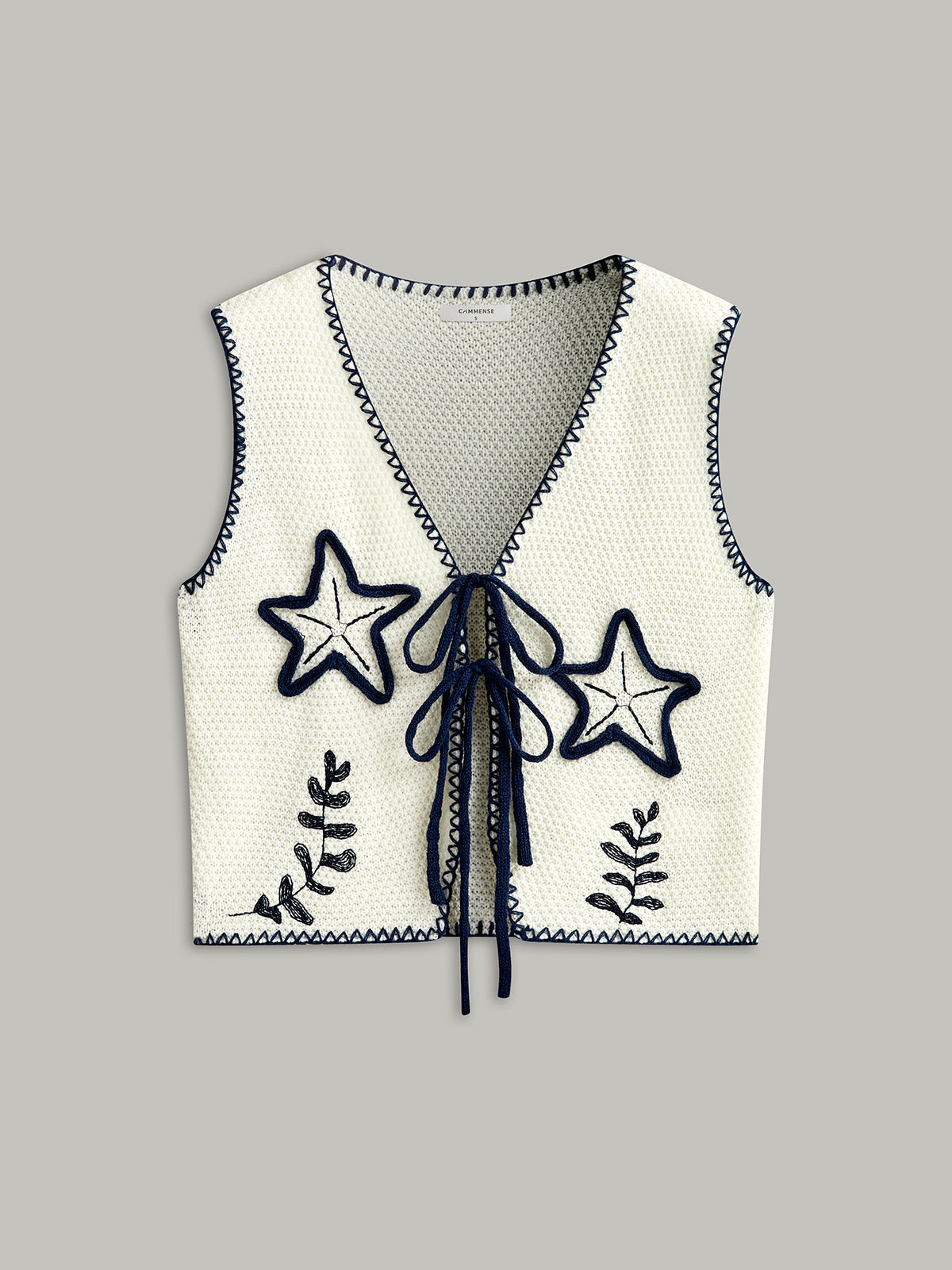 İşlemeli Örgü Önü Bağcıklı Yelek