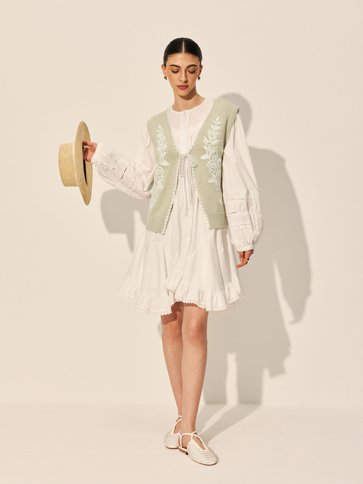 Nakışlı Fiyonklu Çiçekli Kazak Yelek