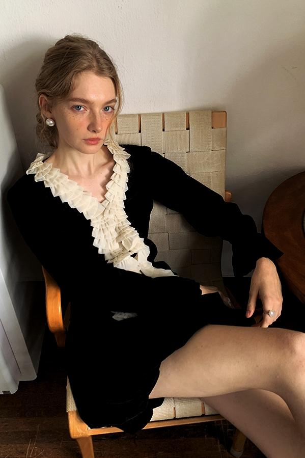 Lorelei Siyah Dantel Jakarlı Mini Elbise