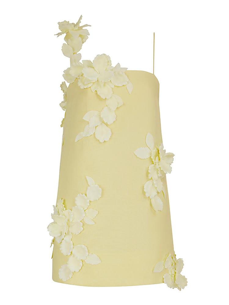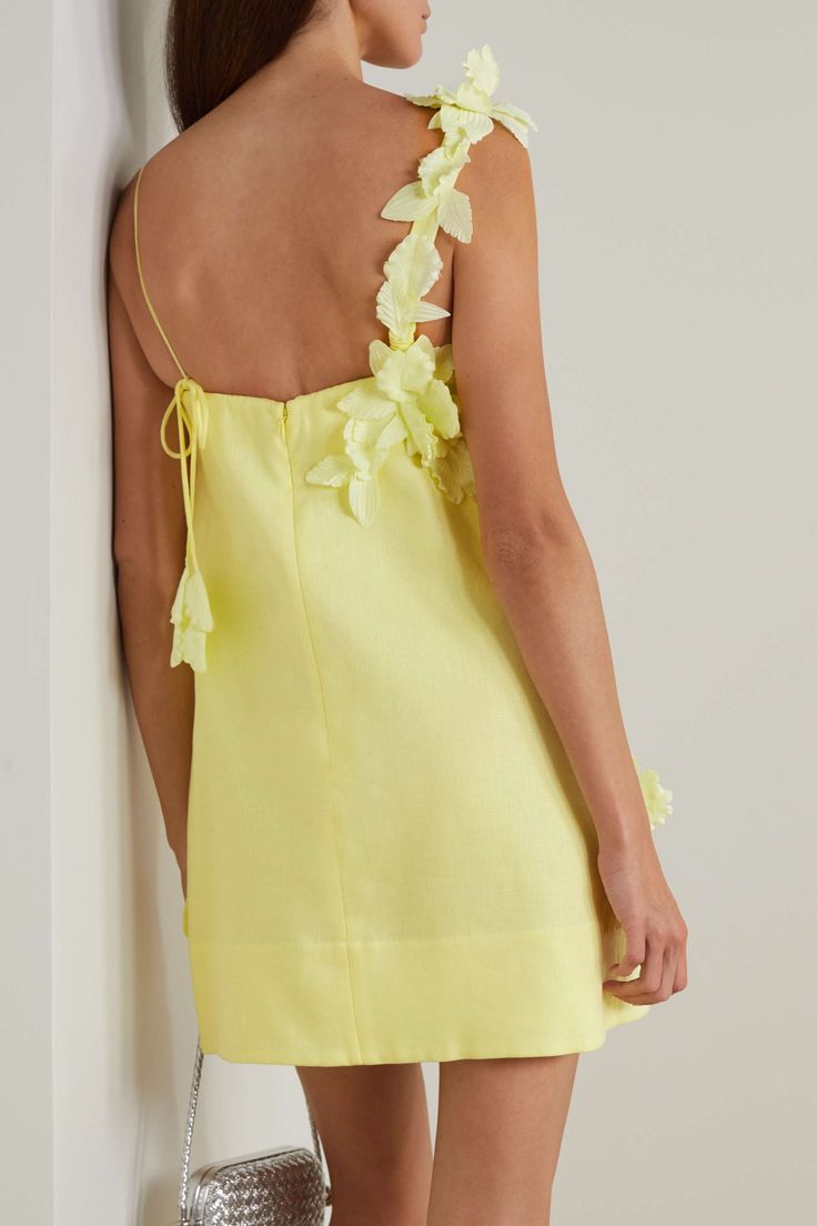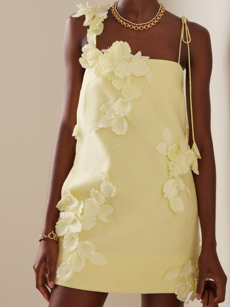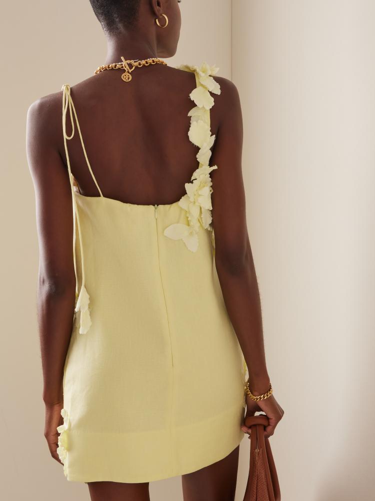 Evelyn Çiçek İşlemeli Mini Keten Sütun Elbise