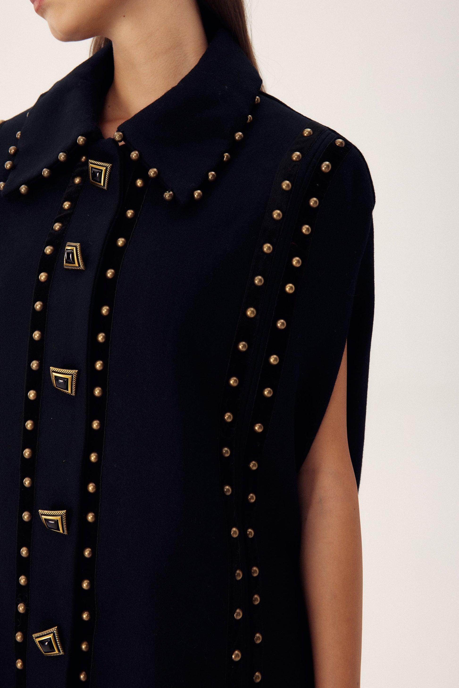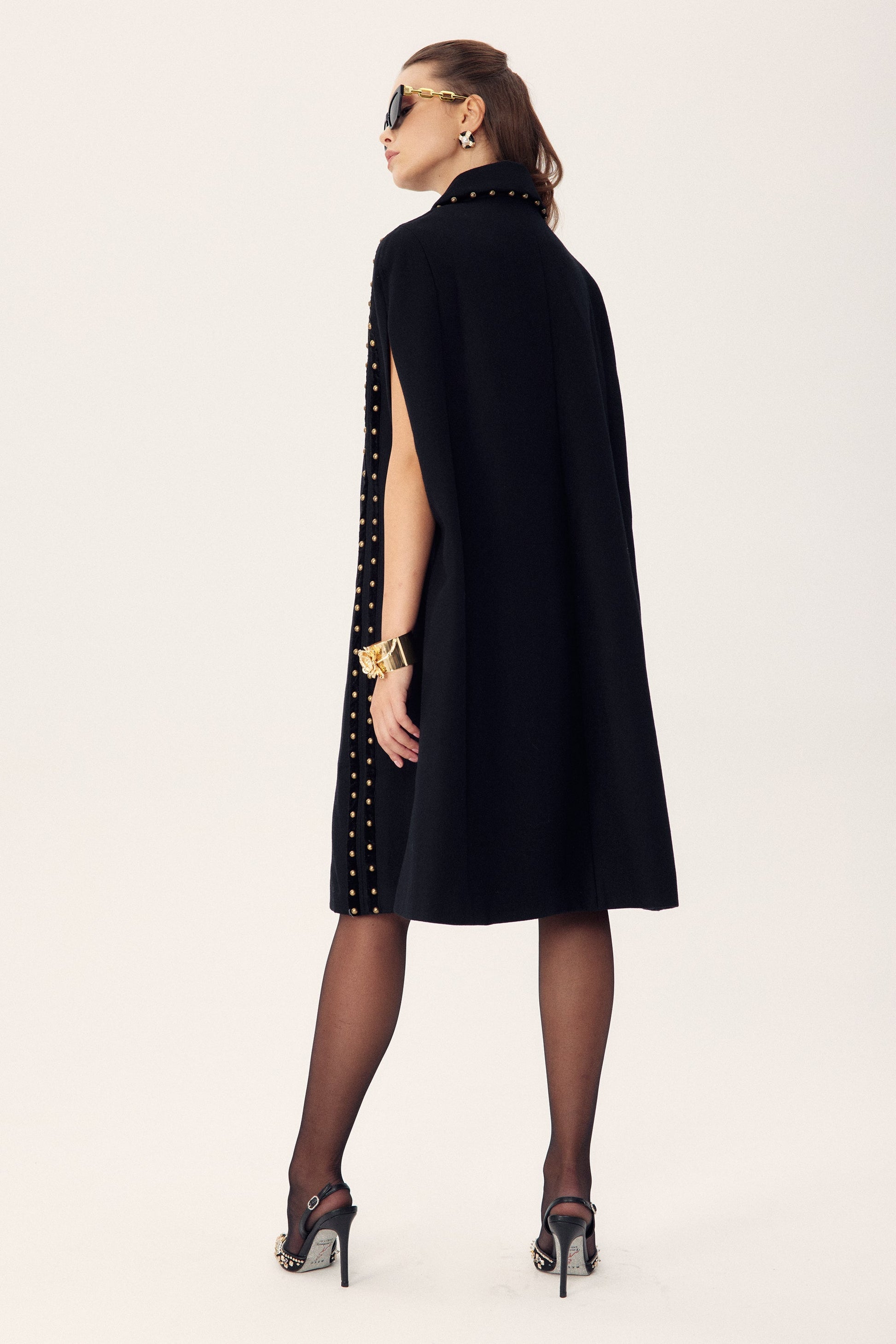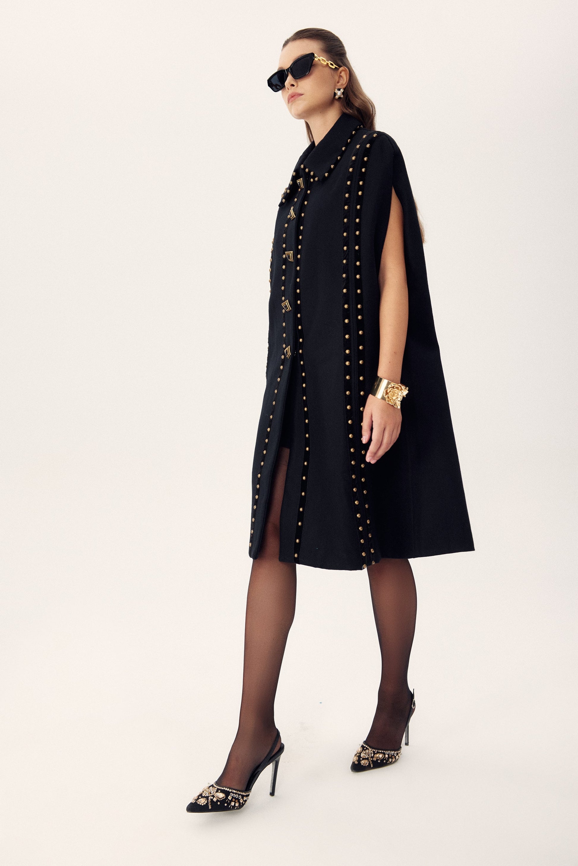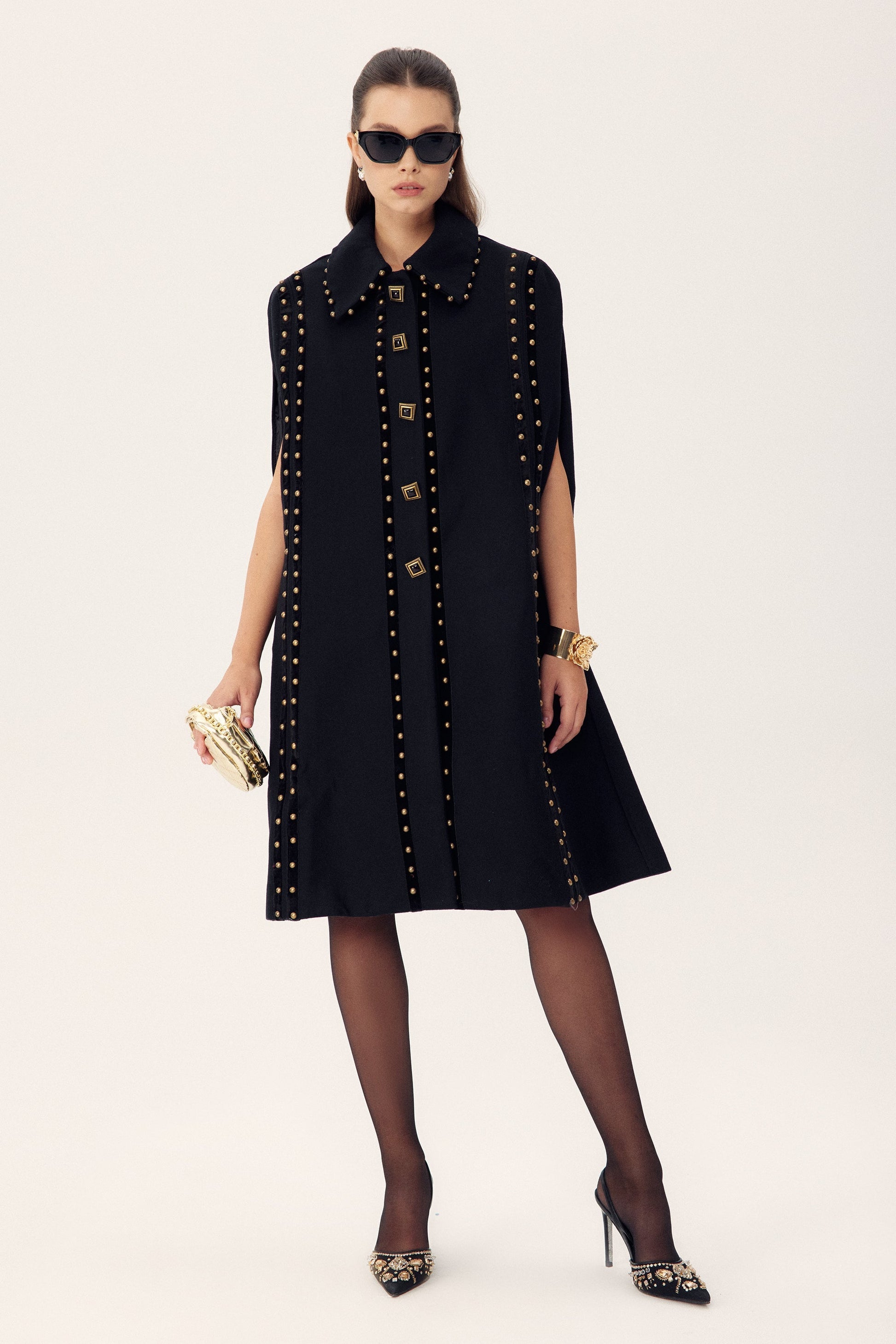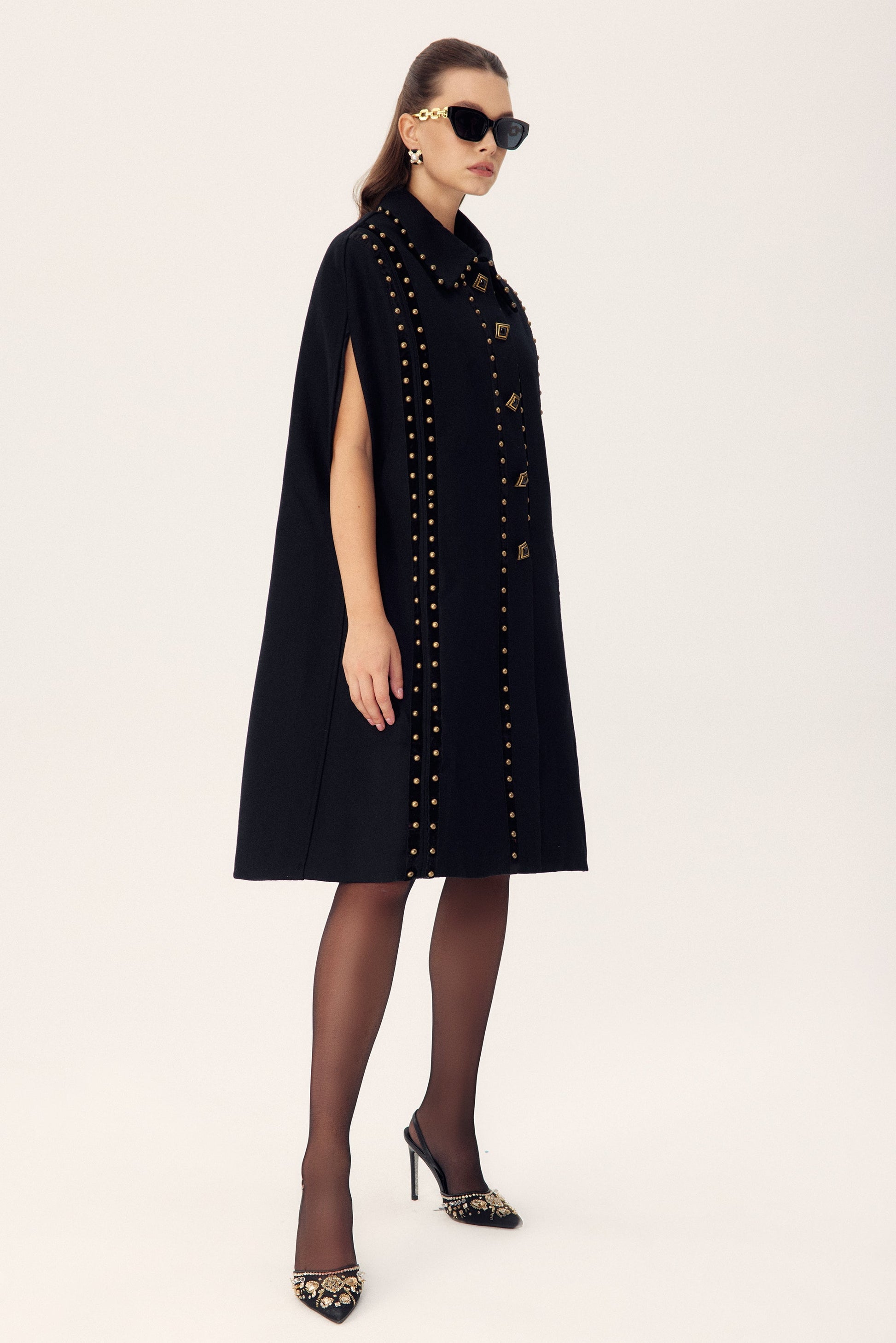 Faithe Perçinler Yün Pelerin Kaban