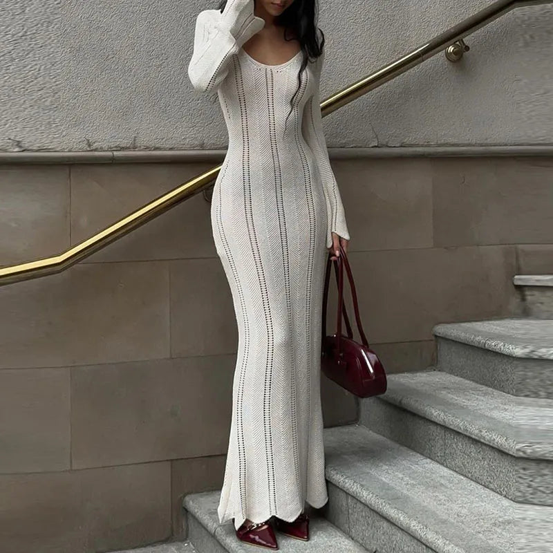 Eloise Uzun Kollu Fiyonklu Maxi Elbise