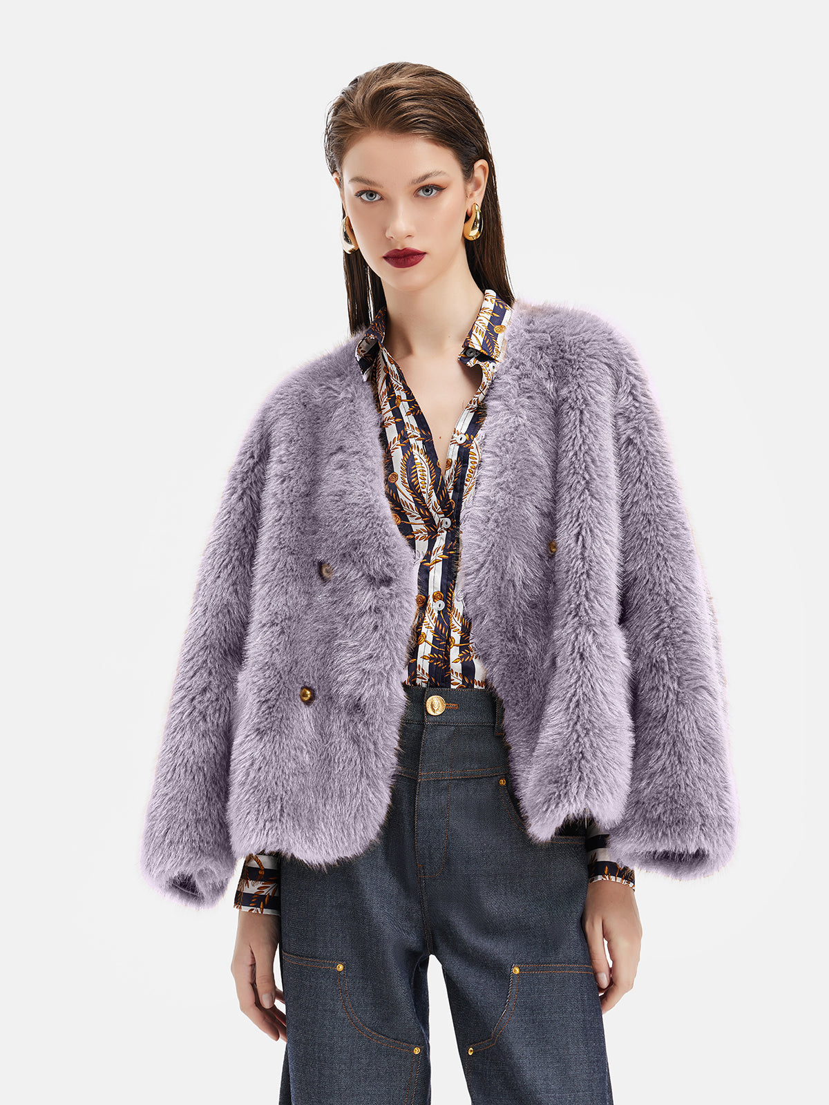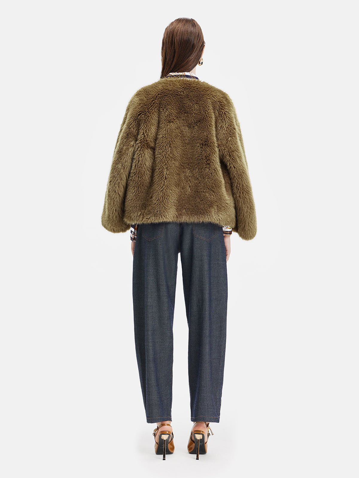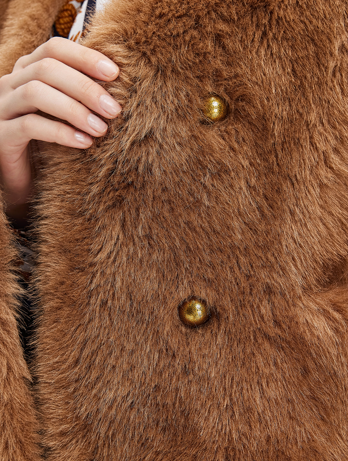 Yvonne Diamante Tüylü Pileli Maxi Şifon Elbise