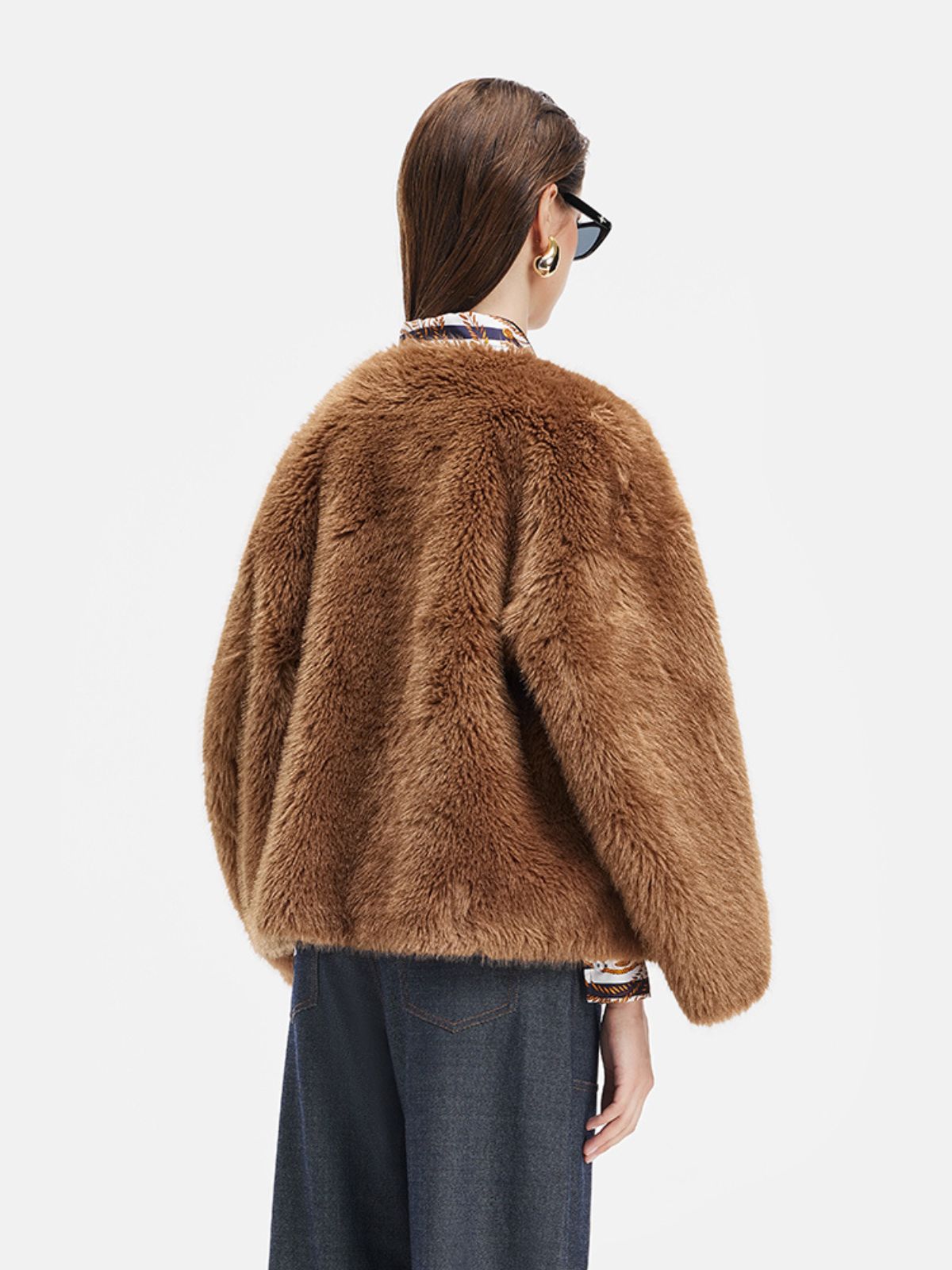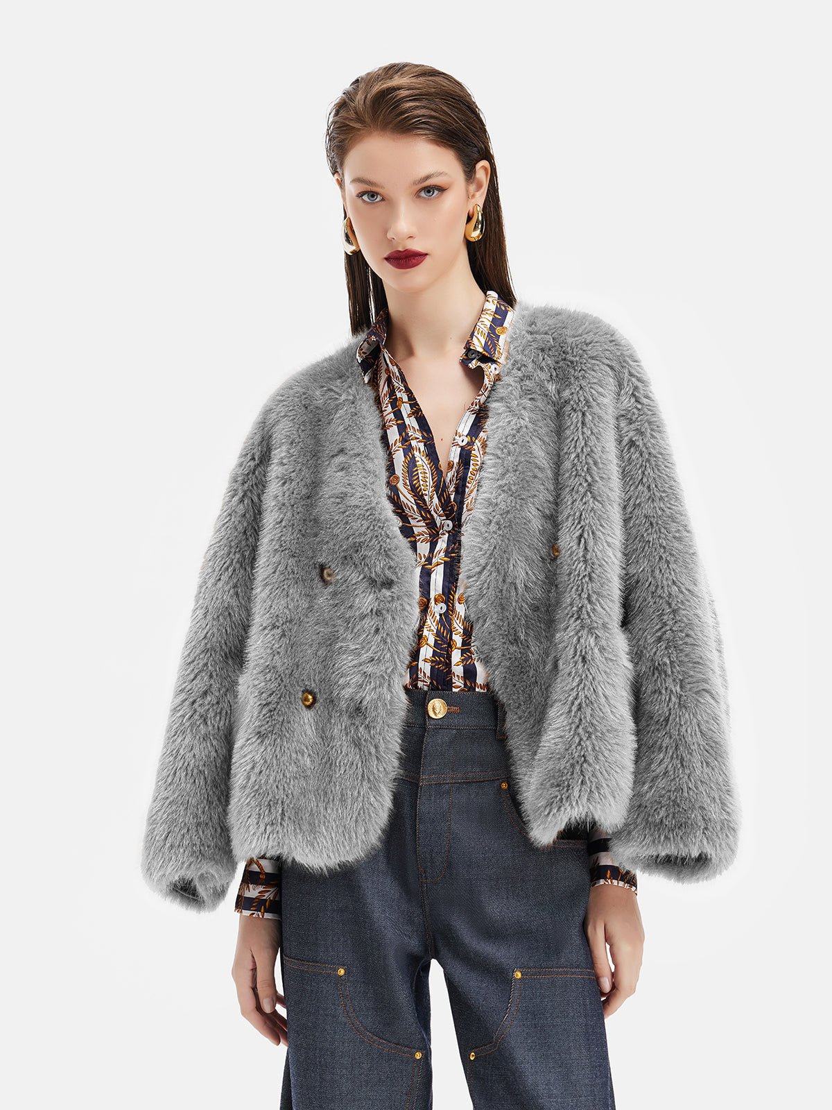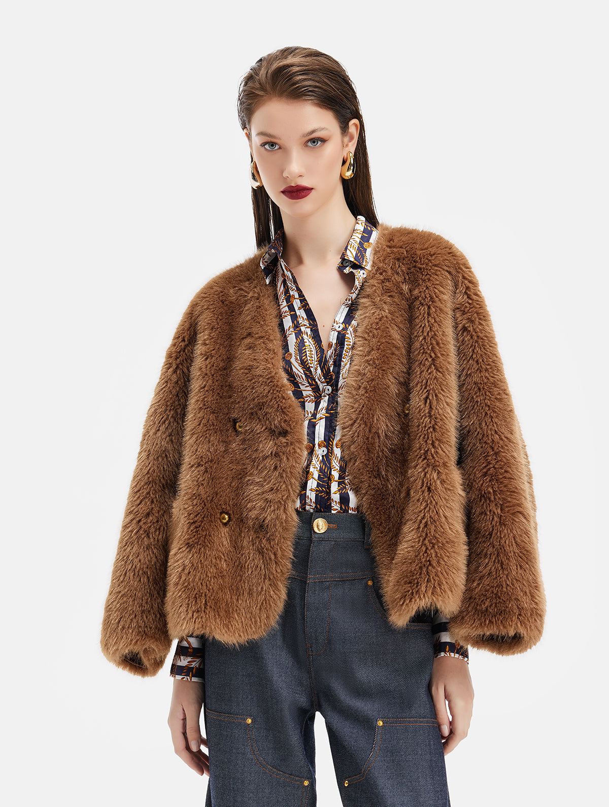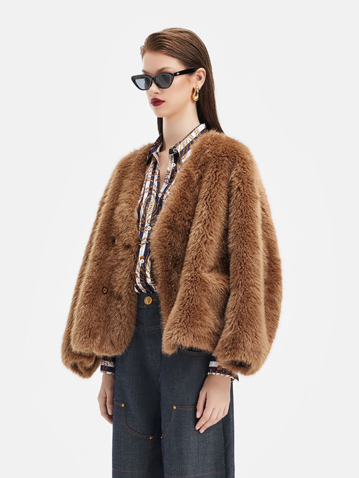 Yvonne Diamante Tüylü Pileli Maxi Şifon Elbise