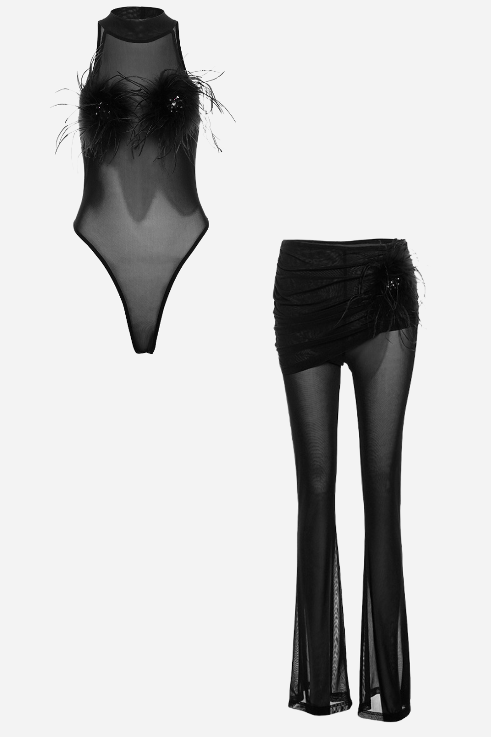 Tiana Siyah Tek Omuz Tüy Bandaj Maxi Elbise