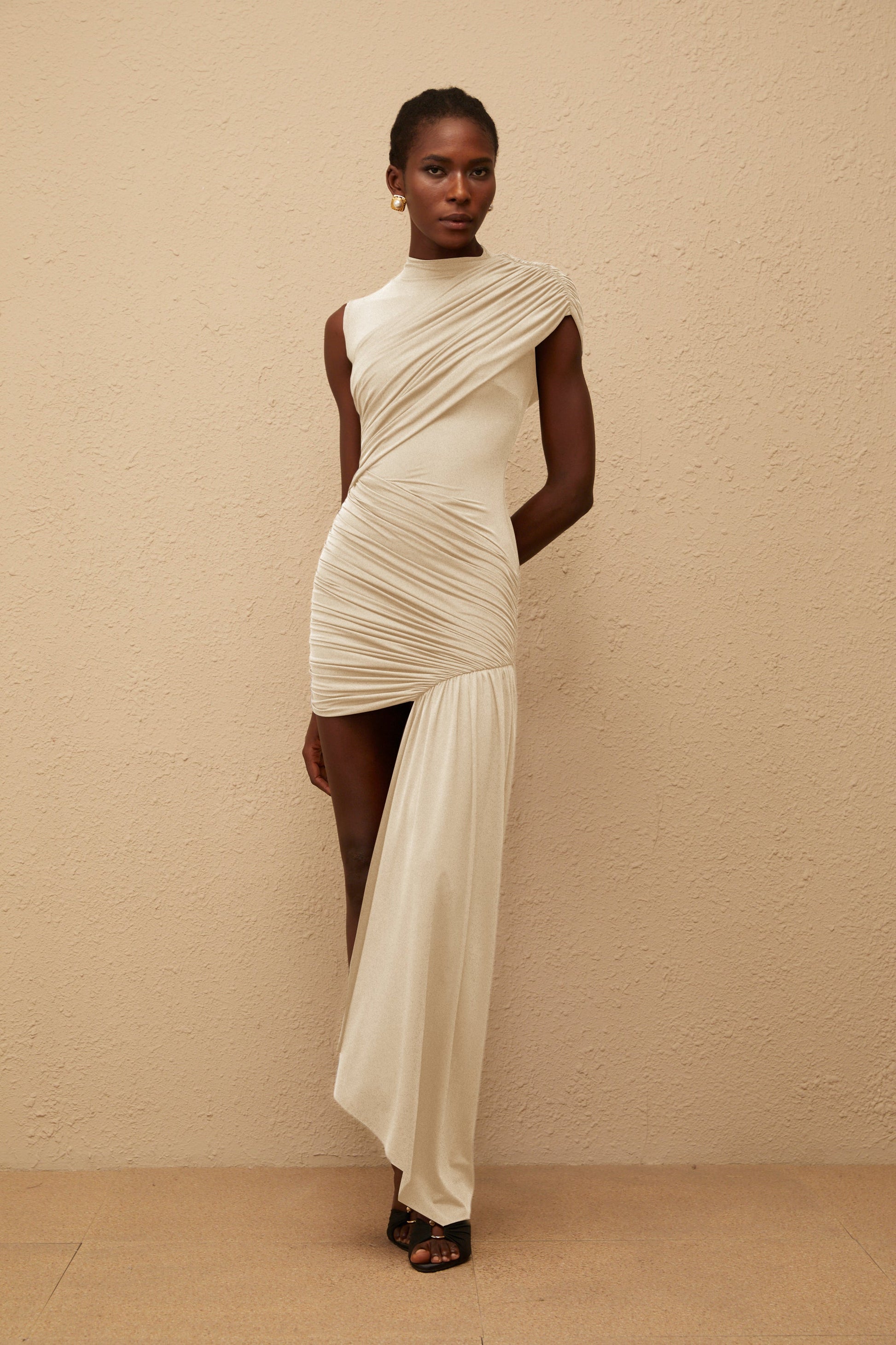 Elbiselerimiz, çağdaş tasarım unsurlarıyla klasik güzellik kavramını yeniden tanımlıyor. Zarif, vücuda oturan siluet, zarif bir görünüm yaratarak sizi gecenin parlayan yıldızı yapar. İster bir galaya, ister bir düğüne veya resmi bir akşam yemeğine katılın, bu elbise zahmetsizce göz alıcı bir görünüm için tercihiniz olacak.