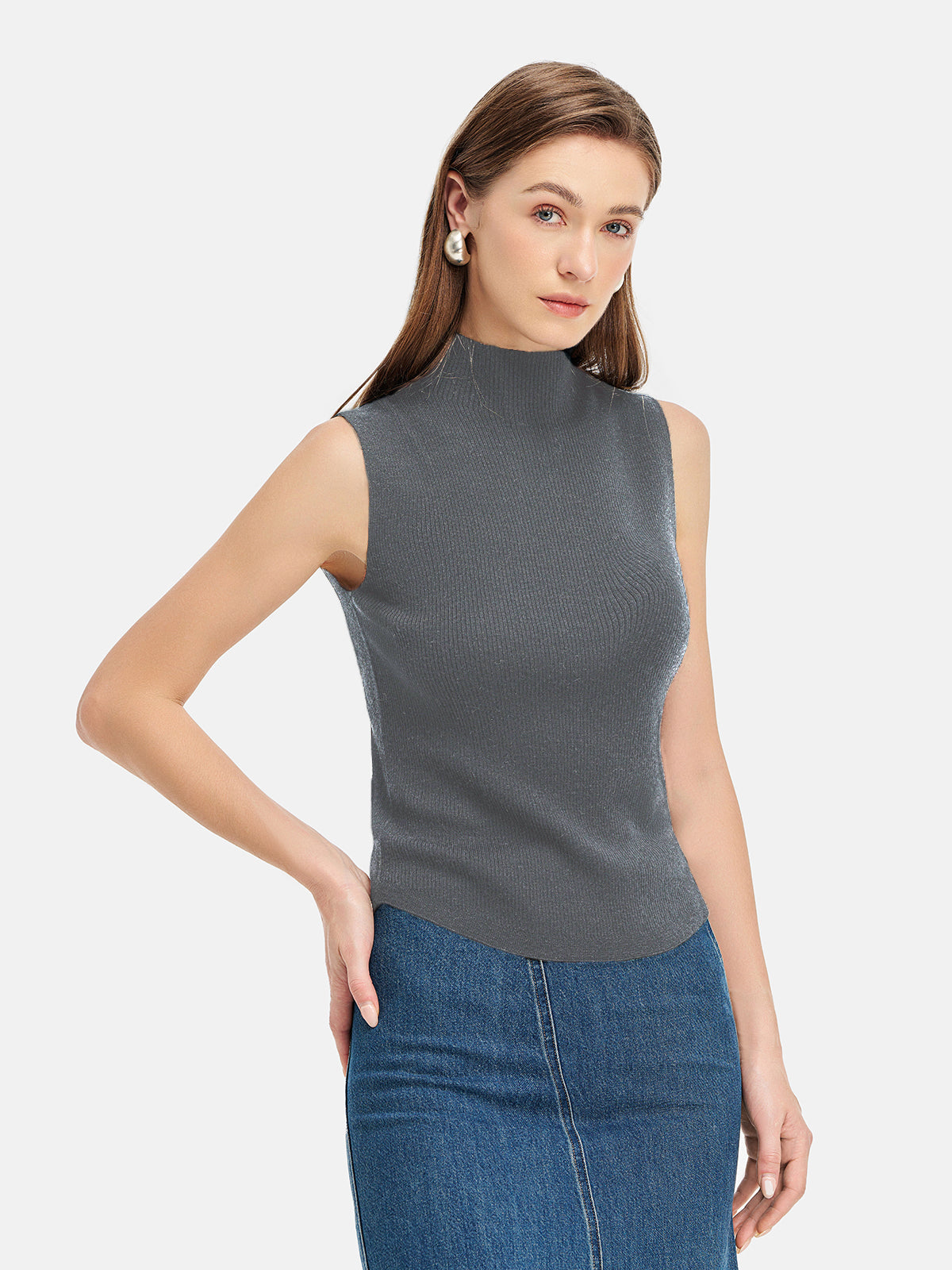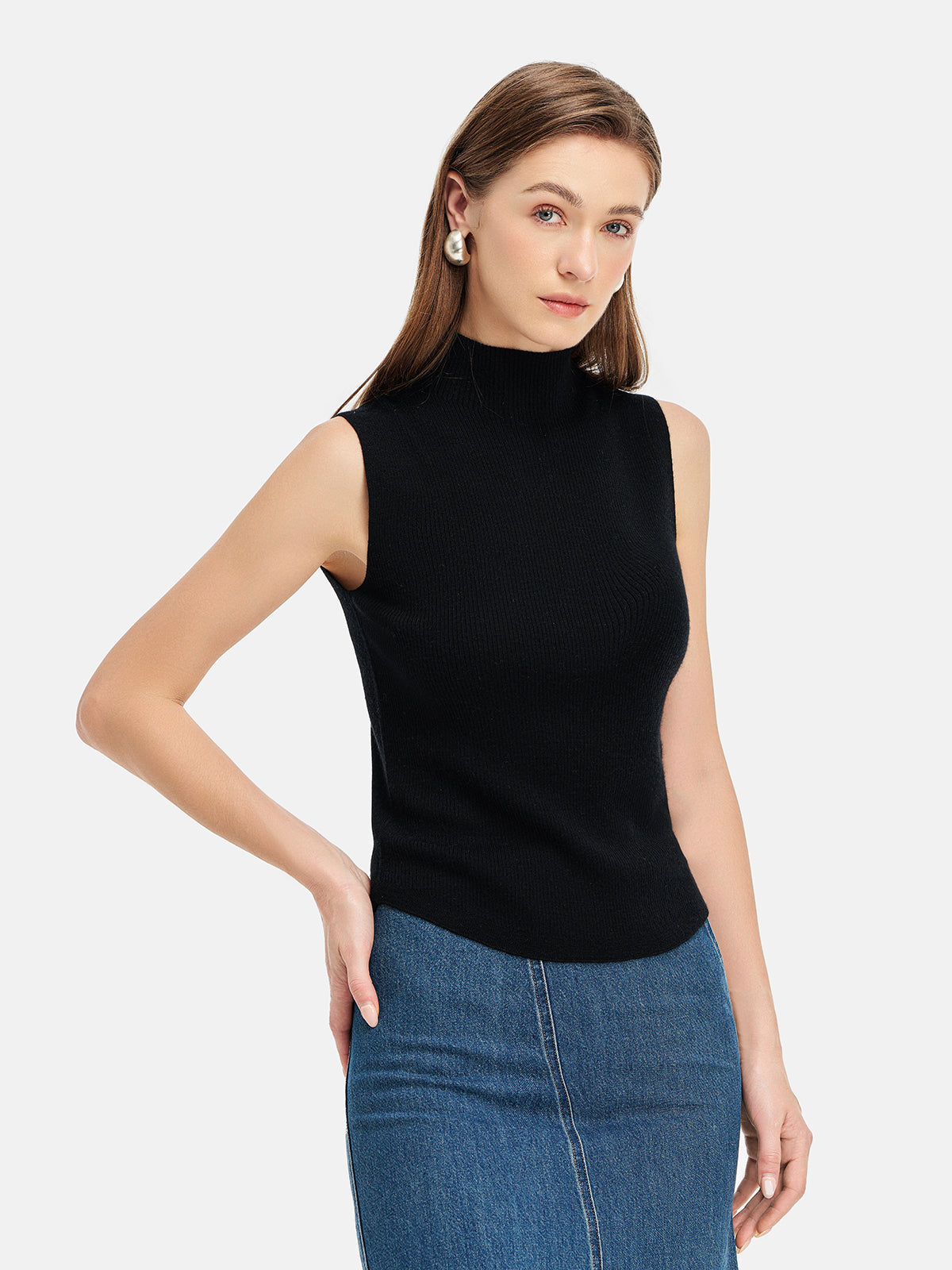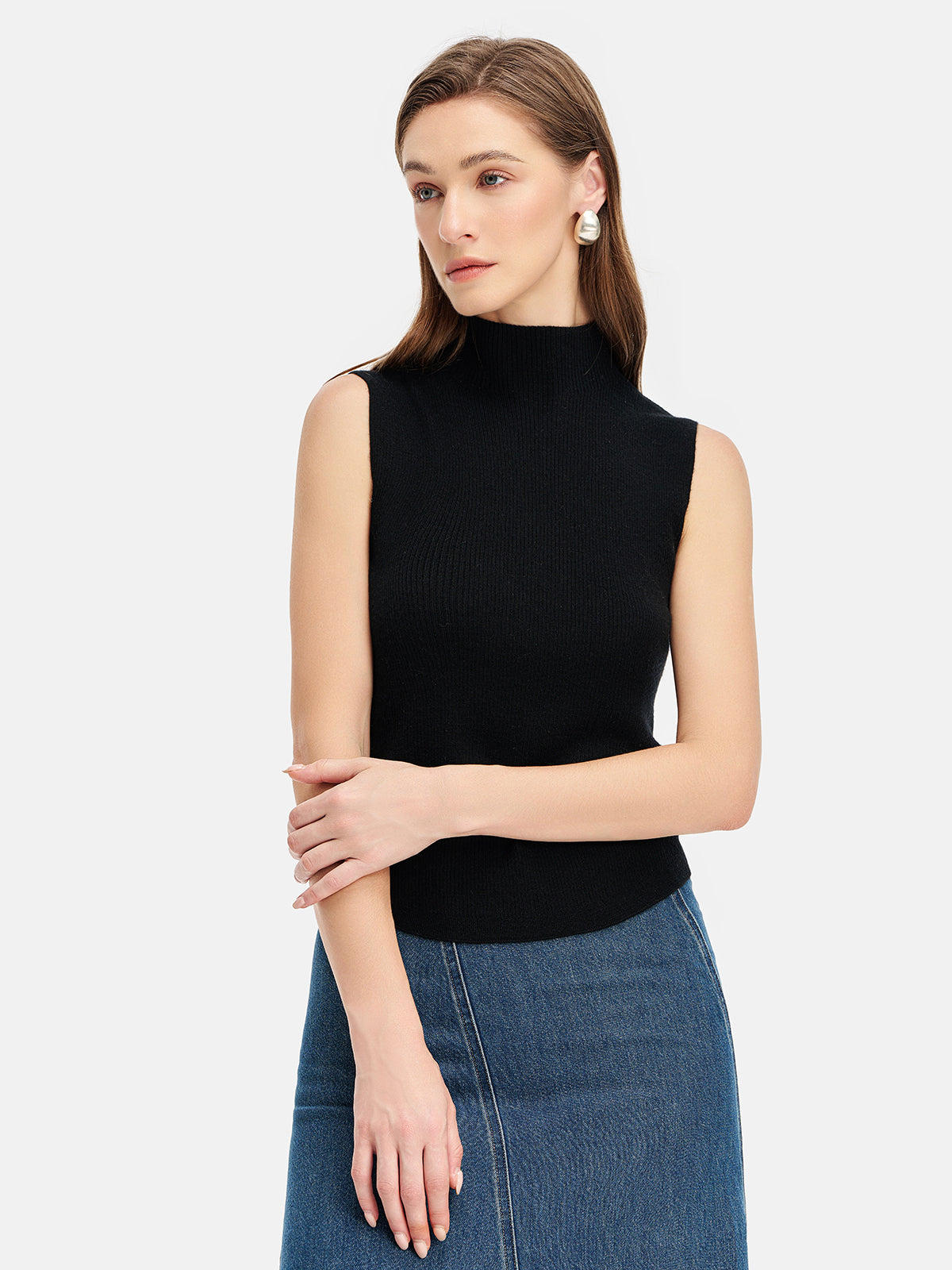 İnce Yün-Kaşmir Yüksek Yaka Yelek