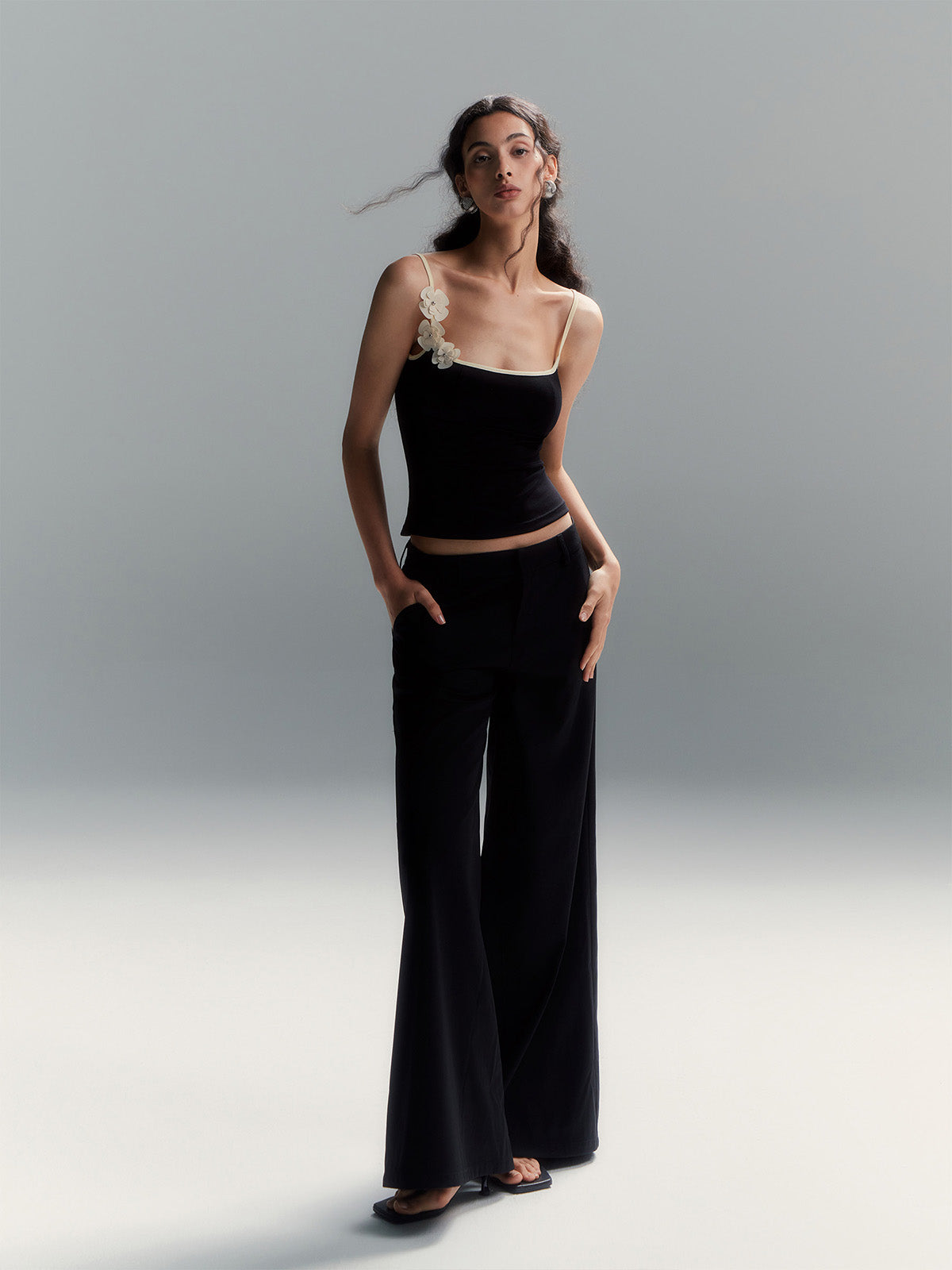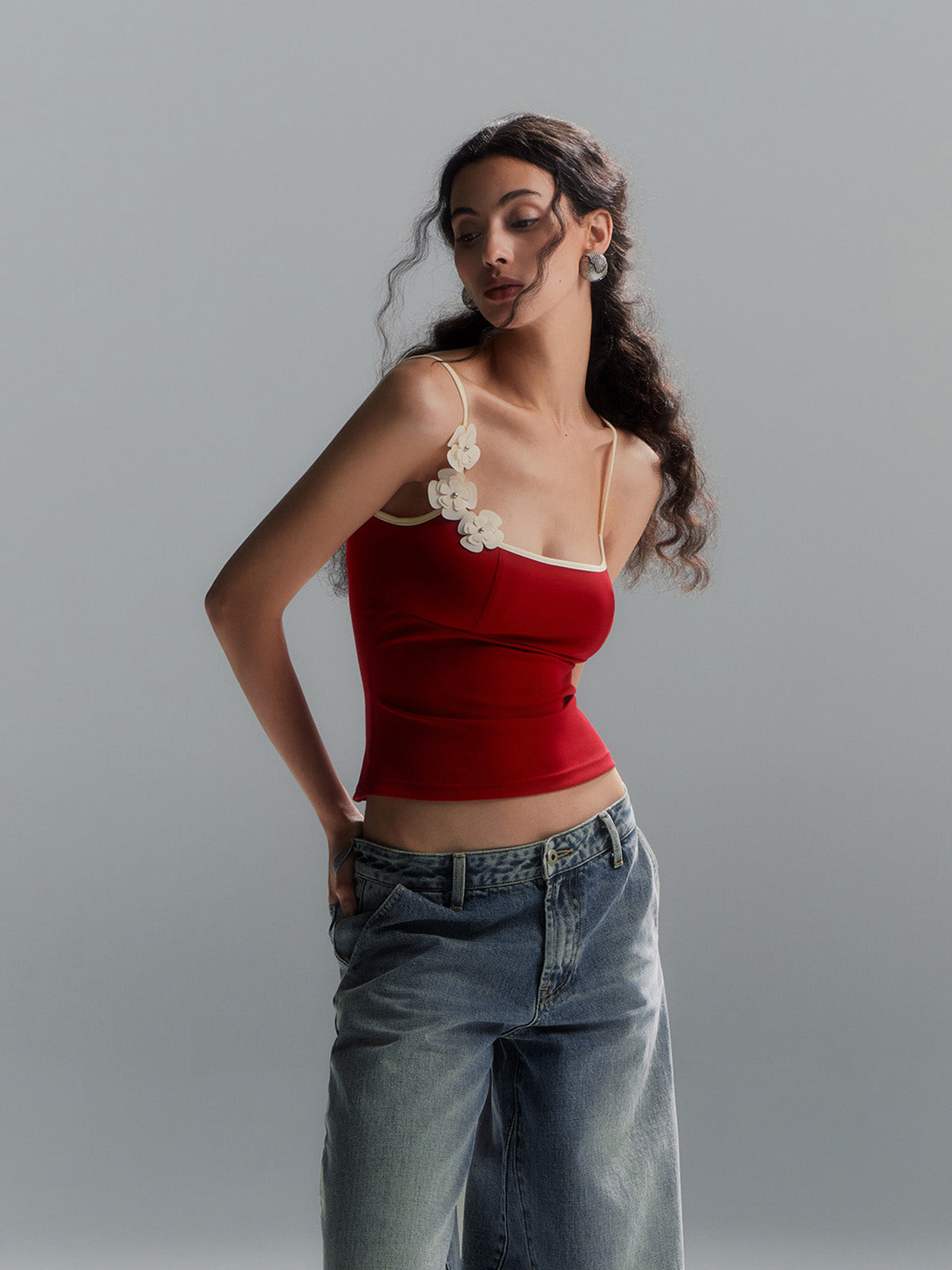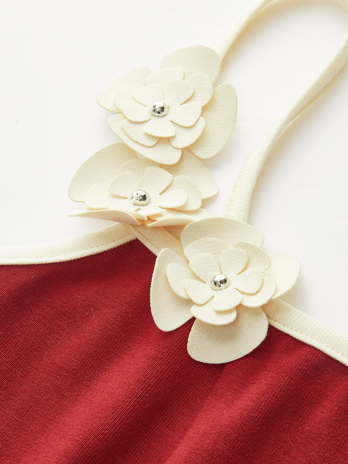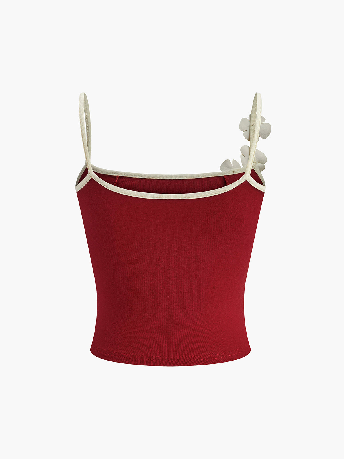 Çiçek Kontrast Trim Dar Kesim Atlet Üst