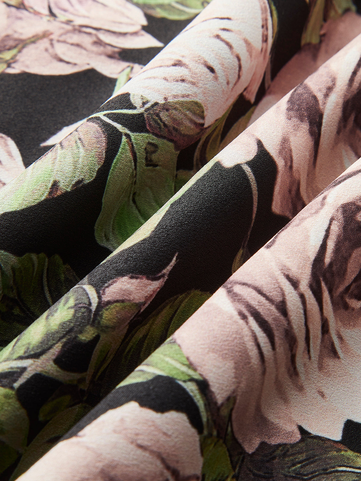 Biberiye Siyah 3D Çiçekli Uzun Elbise