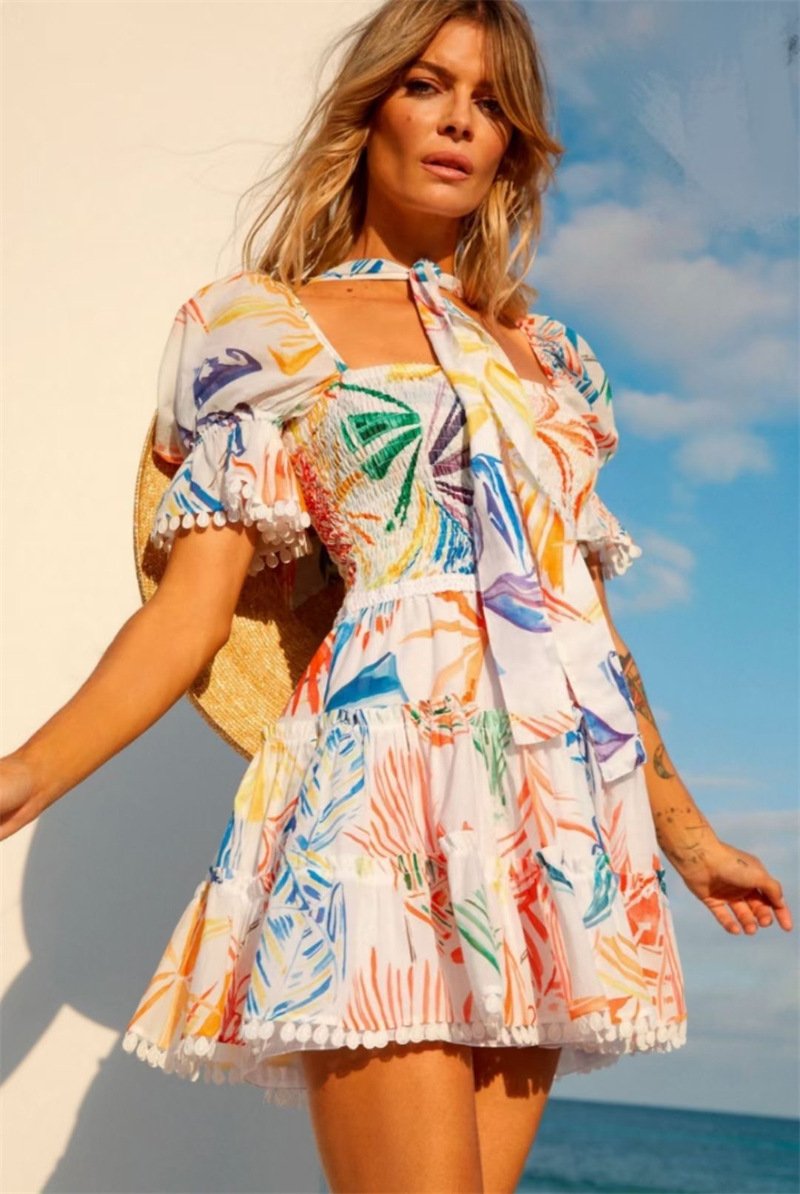 Florence Baskılı Büzgülü Korsajlı Mini Elbise