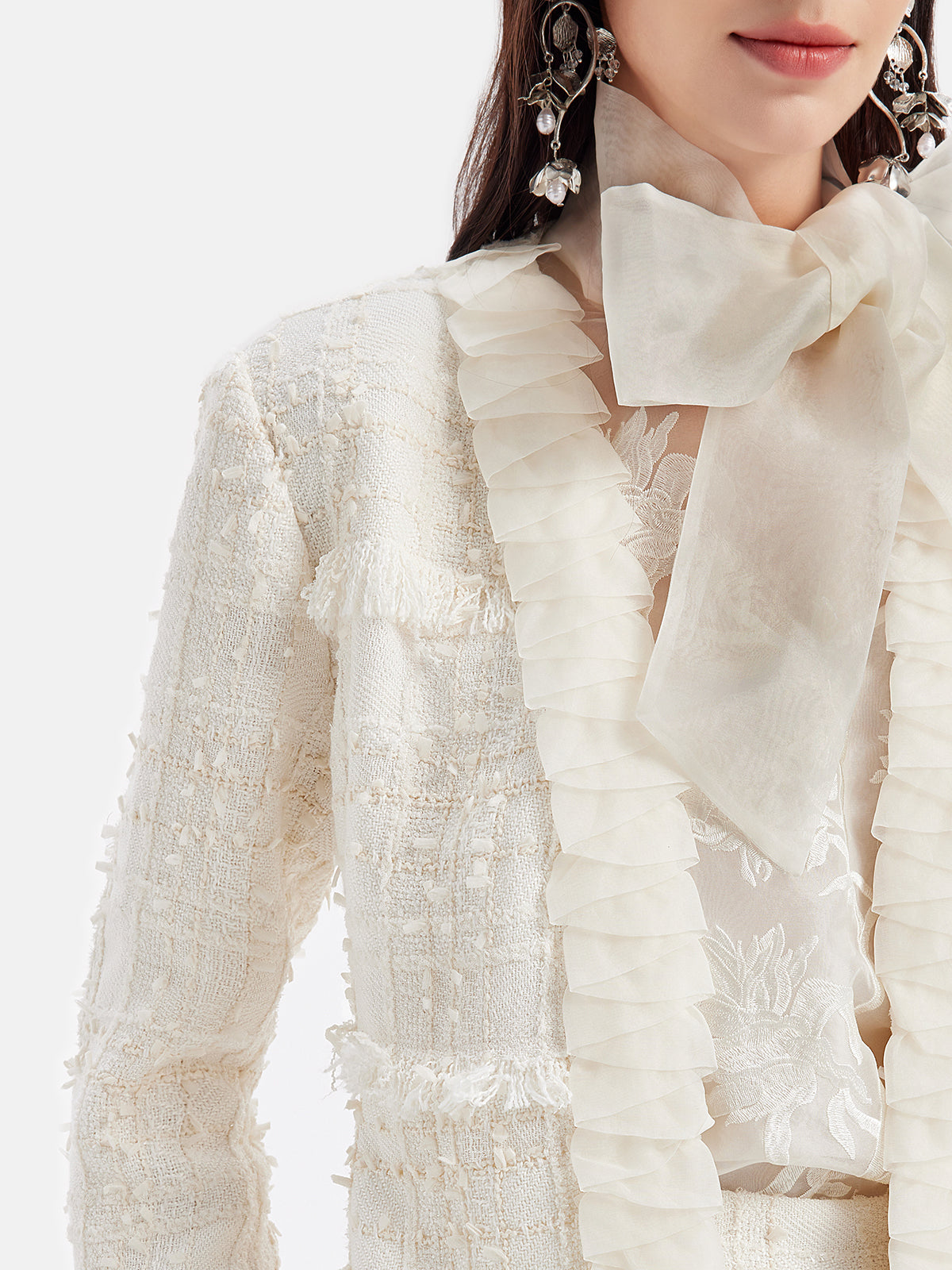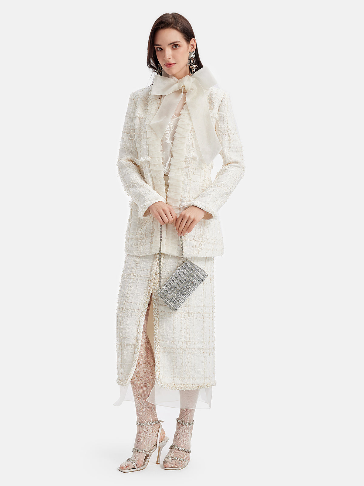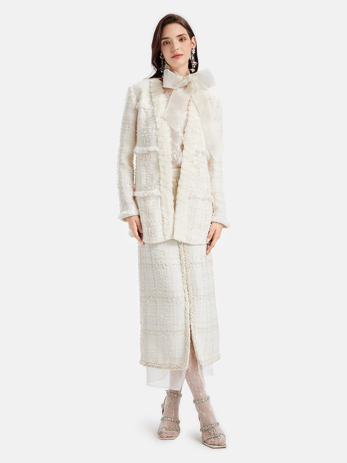 Fransız Simli Tüvit Fırfırlı Uzun Kaban